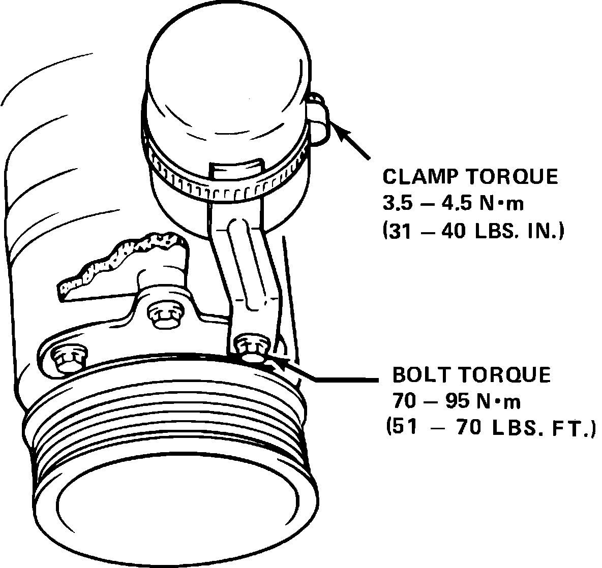 Some 1985-86 Firenza models with 2.0L engines may experience a broken air conditioning compressor discharge pipe.. If this occurs, a bracket and clamp to support the muffler is now available to prevent reoccurence of the failure. Bracket and clamp support kit, part number 22535625, is now available from WDDGM and should be installed. The bracket can be installed by removing the compressor to bracket bolt and installing the bracket and clamp as shown in Figure 1.