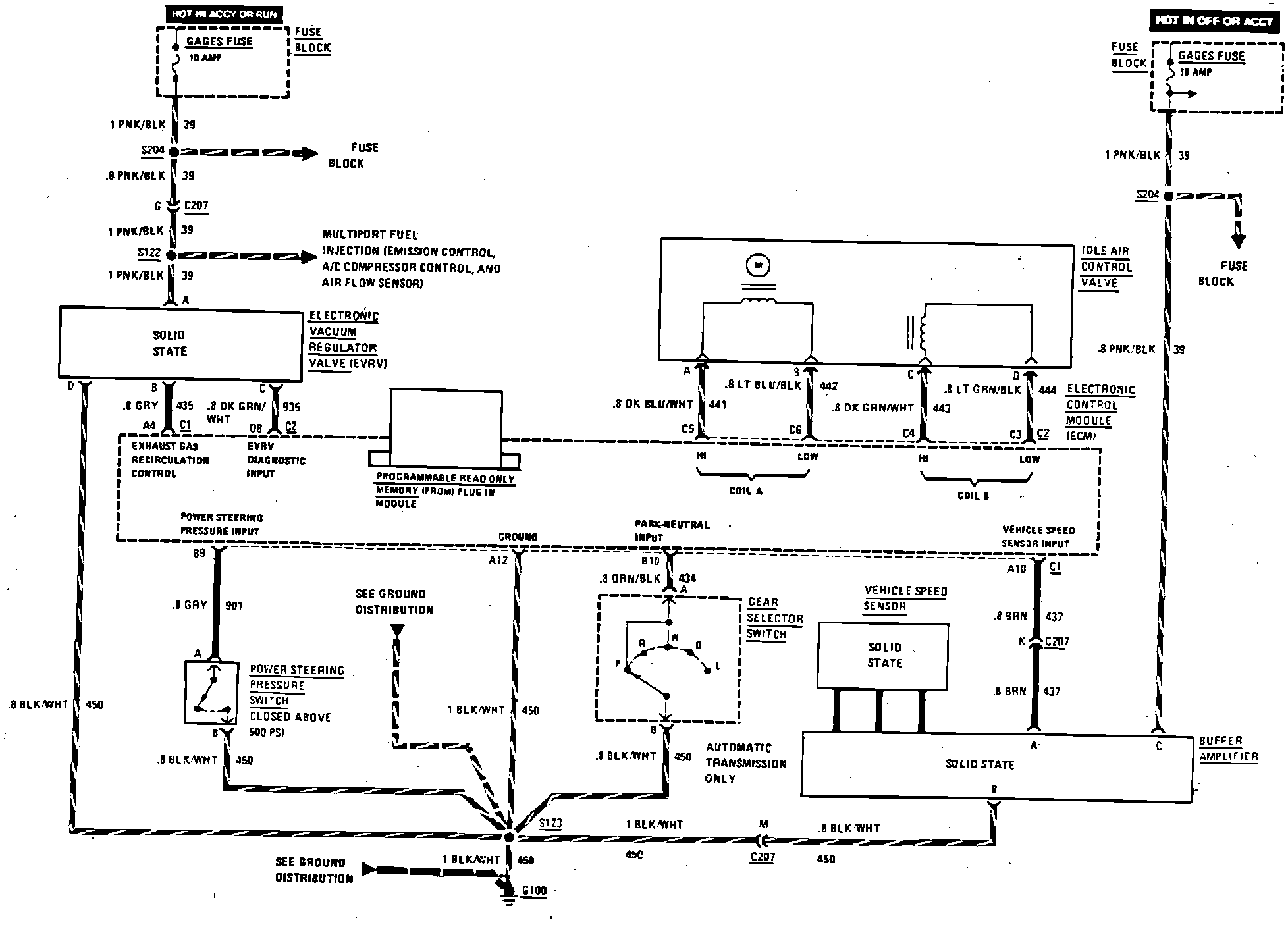 Multiport Fuel Injection (Idle Speed Control & Vehicle Data Sensors) Wiring Circuit: