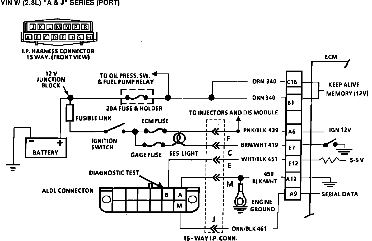Fig. 019 - Wiring Diagram for Chart A-2 Code 12 Will Not Flash. VIN W: