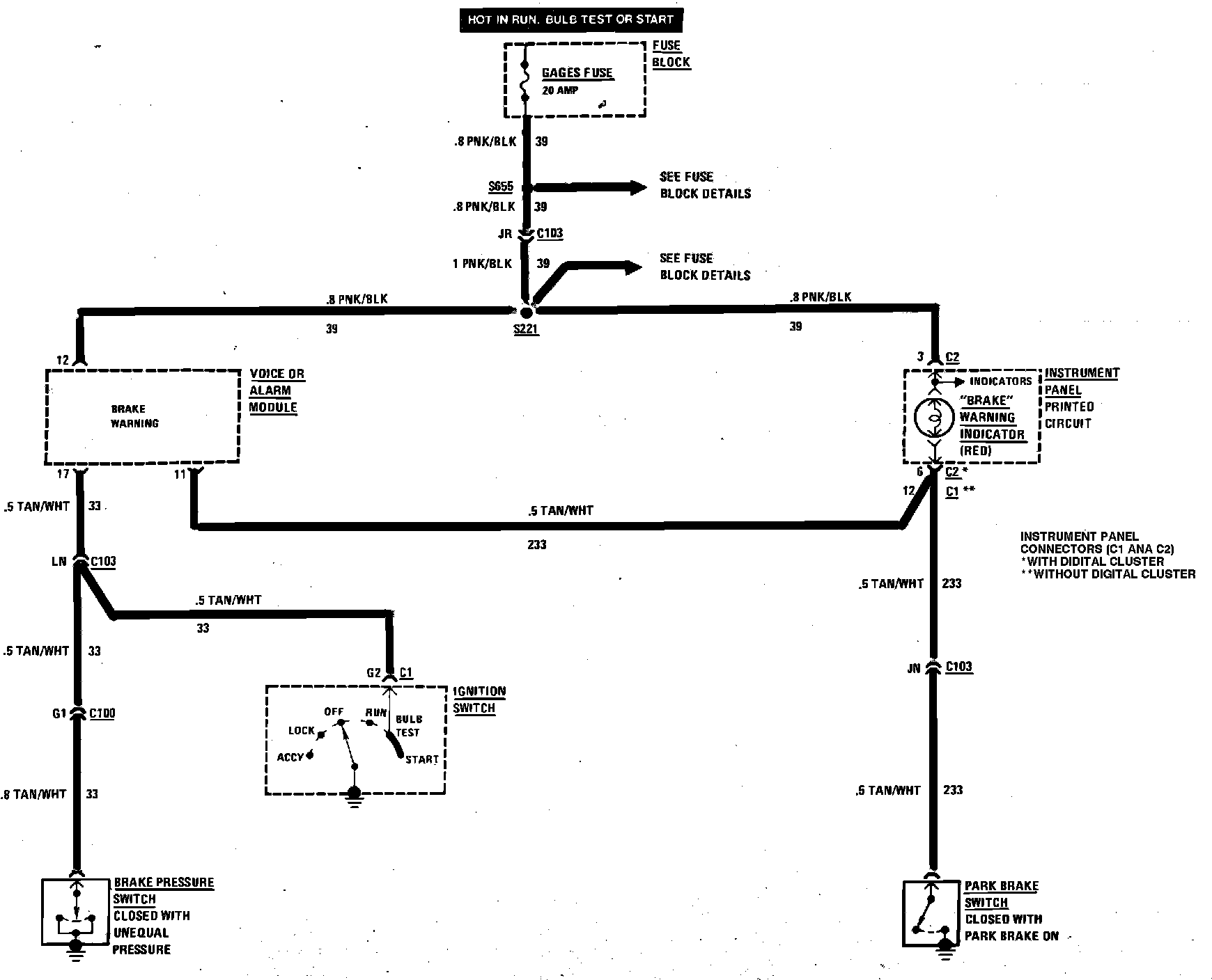 Brake Warning System Wiring Circuit (With Alarm Or Voice Information System):