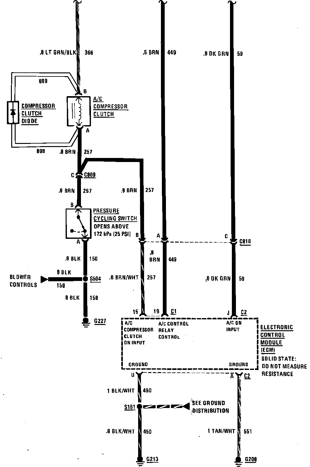 Air Conditioning Compressor Control Wiring Circuit (With Tempmatic Air Conditioning):
