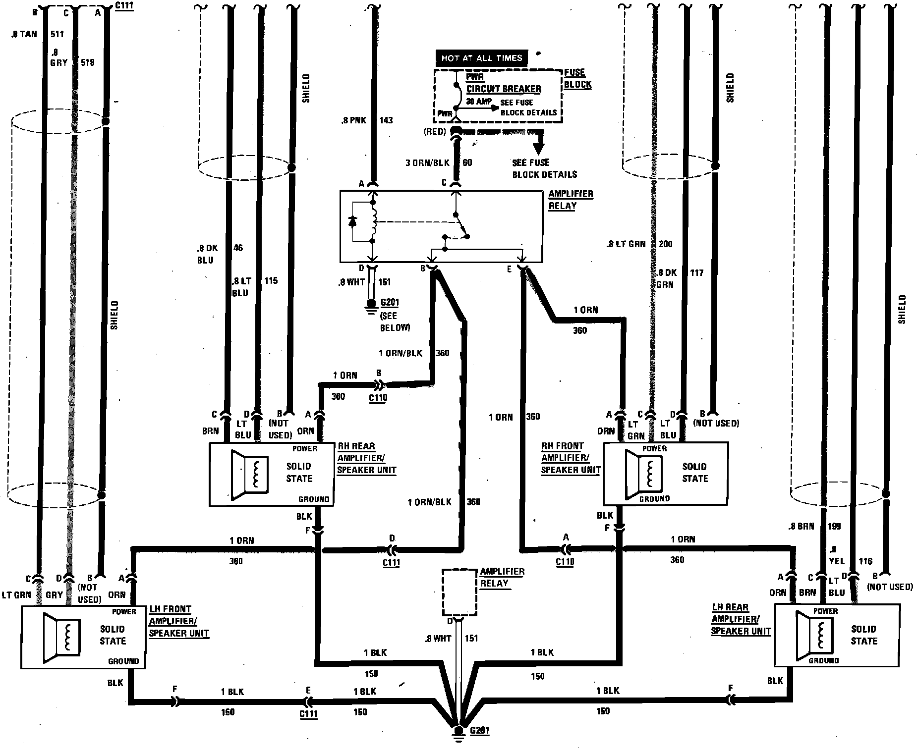 Amplified Door Mounted Speaker Wiring Circuit: