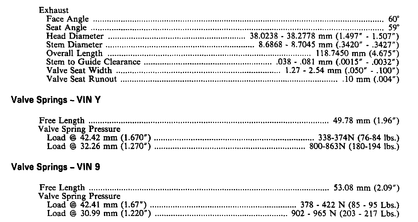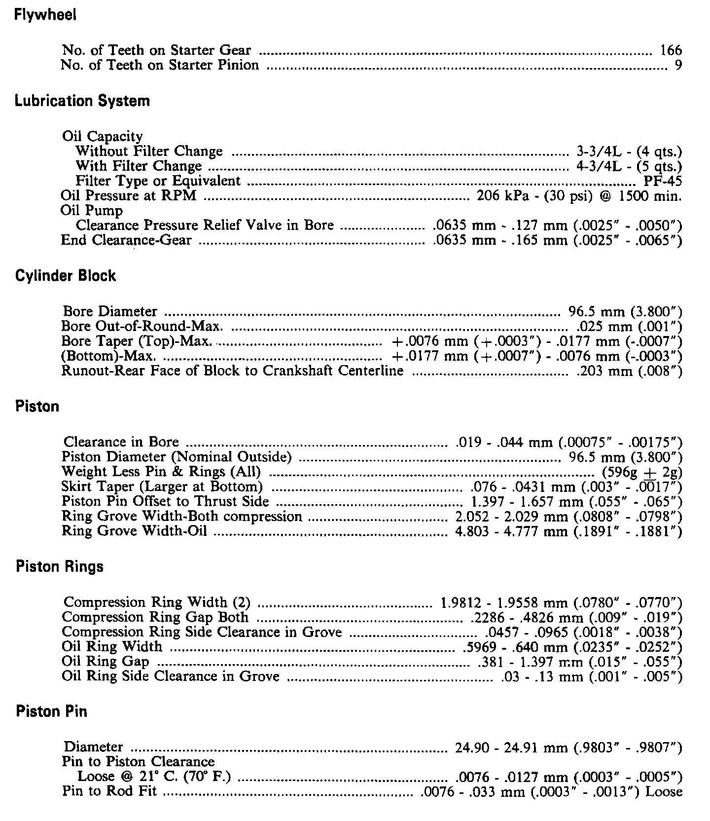 Continued Engine Specifications: