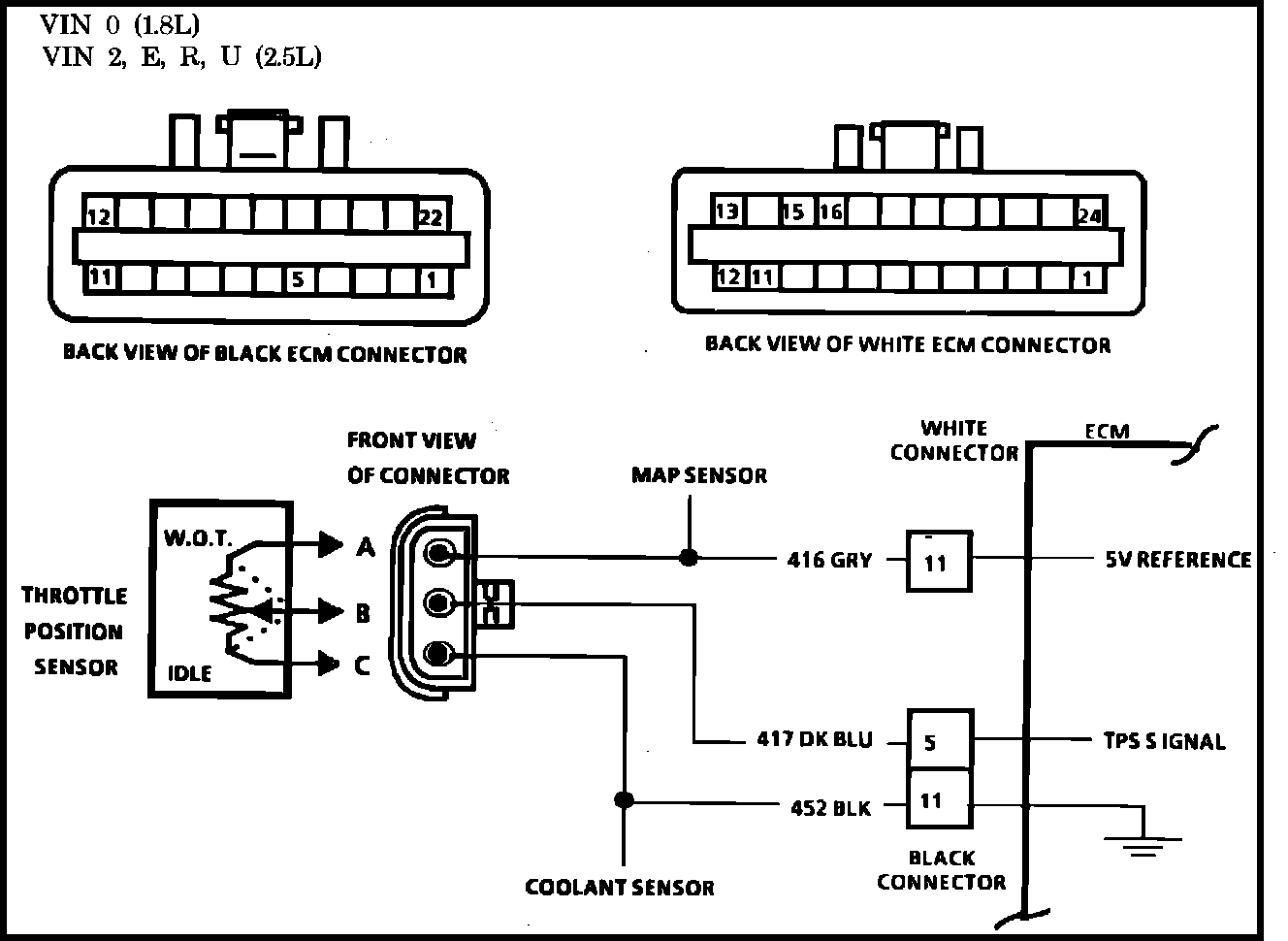 2. Simulates Code 22: If the ECM recognizes the low signal voltage and sets Code 22 the ECM and wiring are OK.