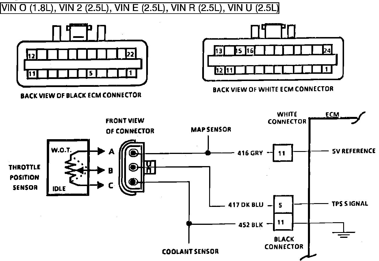 Fig. 098 - Wiring Diagram for Code 22 Throttle Position Sensor. VIN 0, VIN 2, VIN E, VIN R, VIN U: