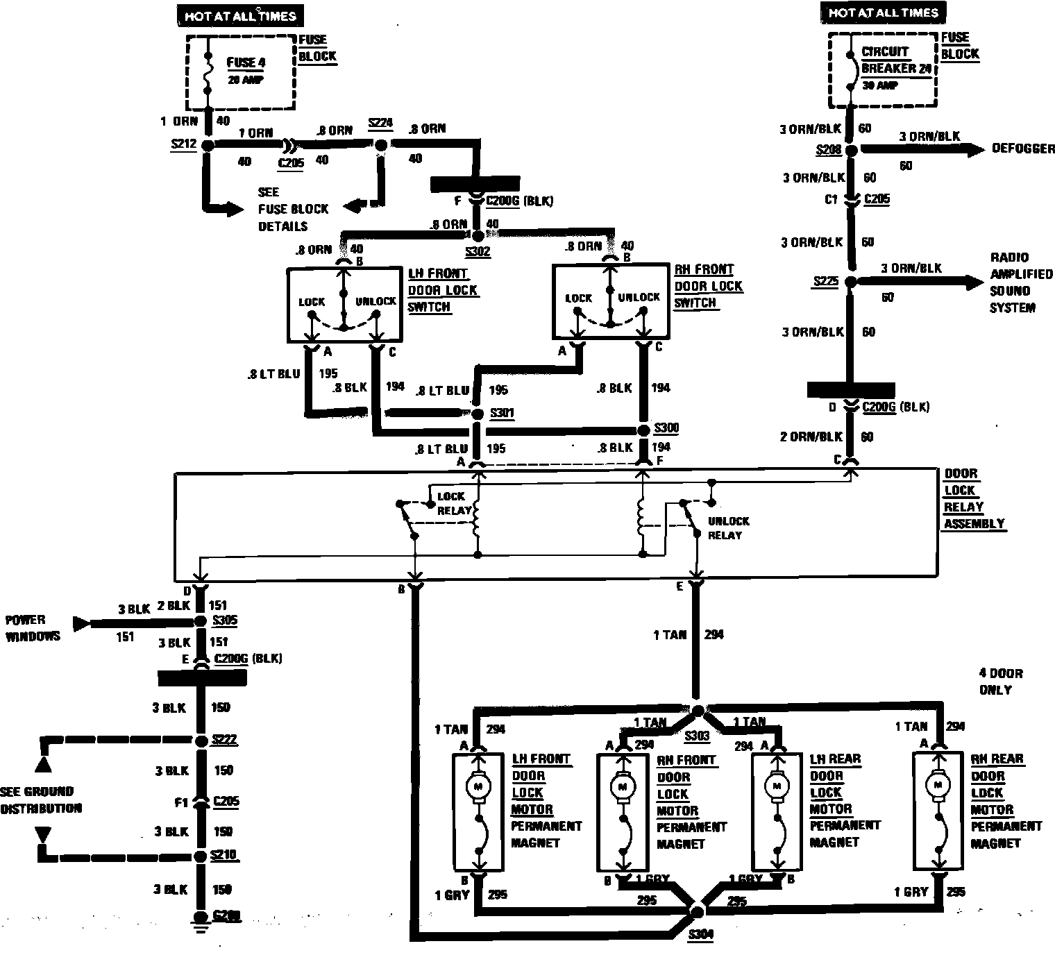 Power Door Locks Wiring Circuit: