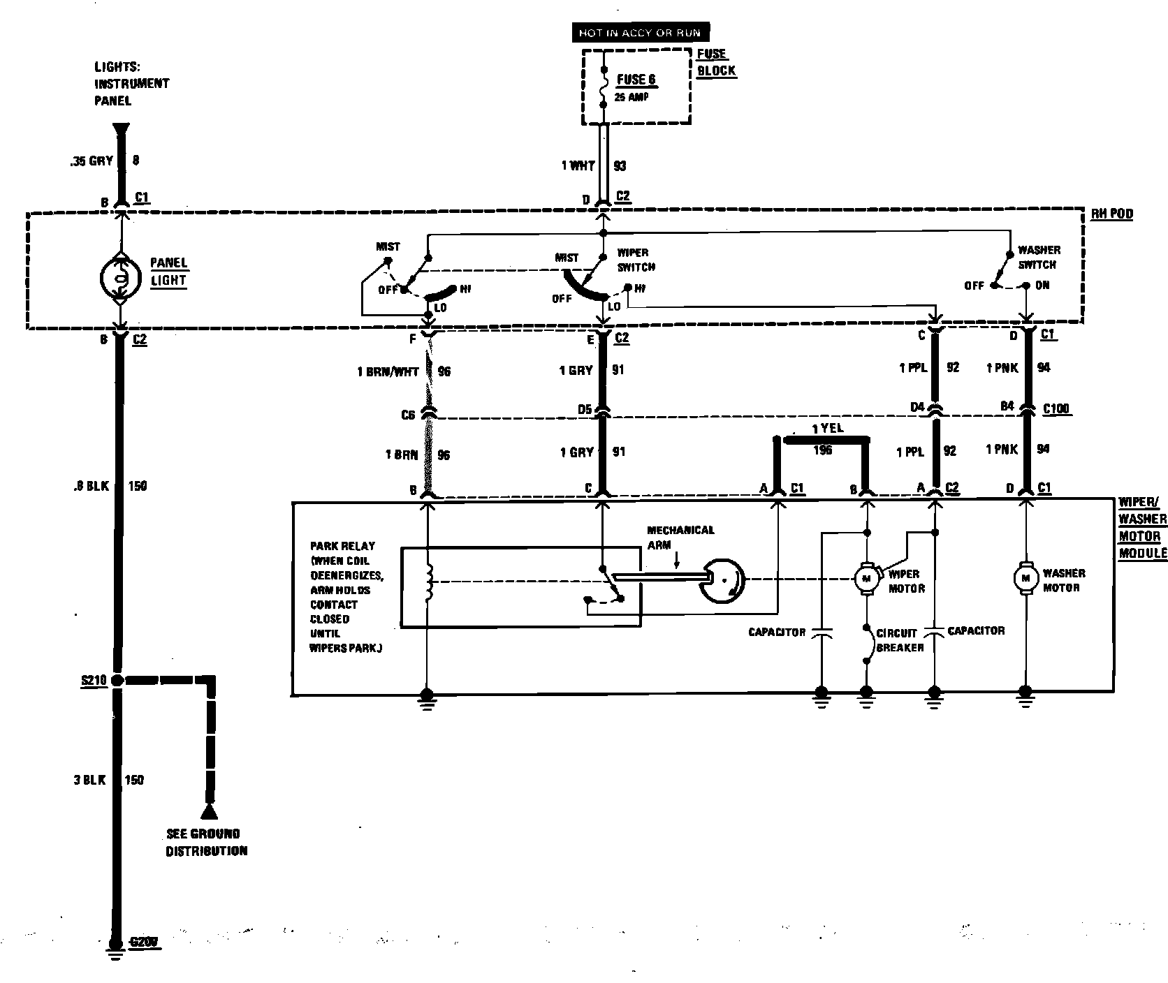 Windshield Washer/Wiper Wiring Circuit (Less Pulse):