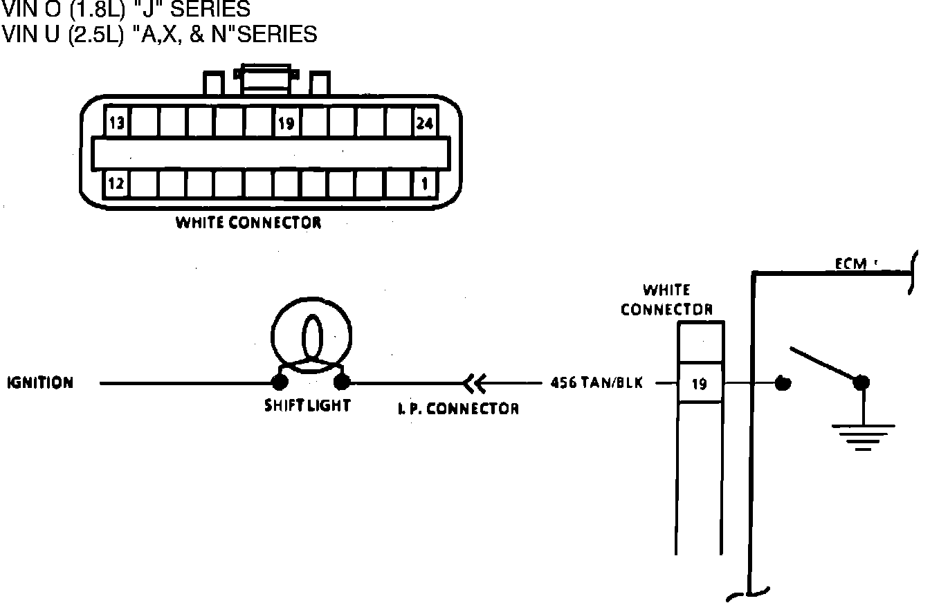 The shift light indicates the best transmission shift point for maximum fuel economy. The light is controlled by the ECM and is turned on by grounding CKT 456.