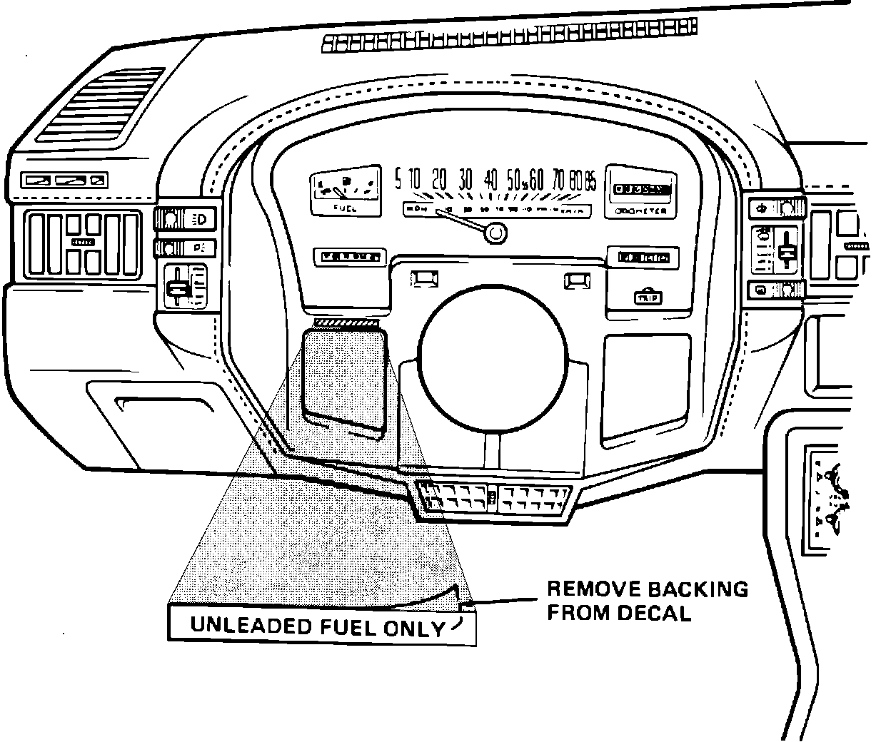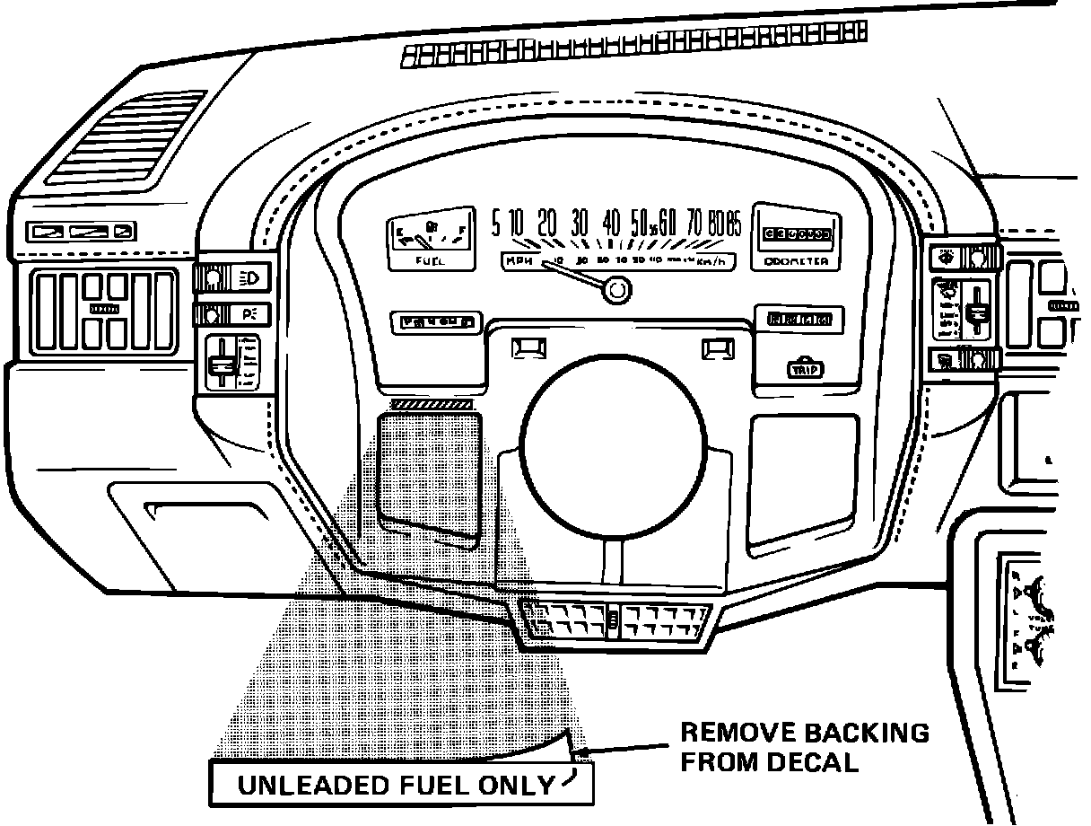 1. Visually inspect the instrument panel cluster for the presence of the "Unleaded Fuel Only" warning. Refer to the illustration on the reverse side of this letter. If the warning is present, no further action is necessary and you may discard the decal.