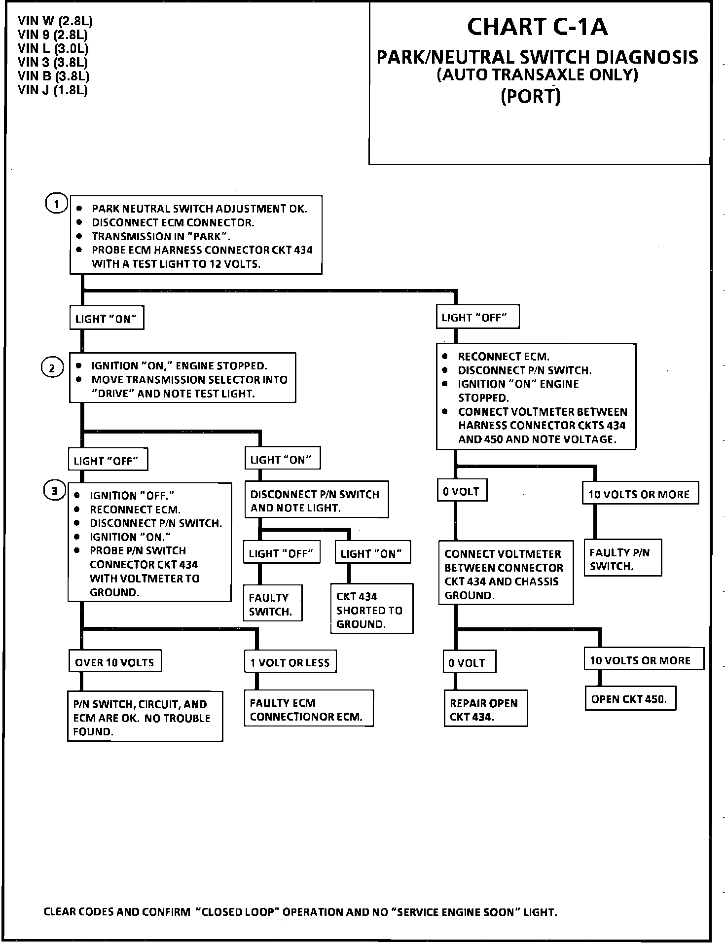 Chart C-1A - Park/Neutral Switch Diagnosis: