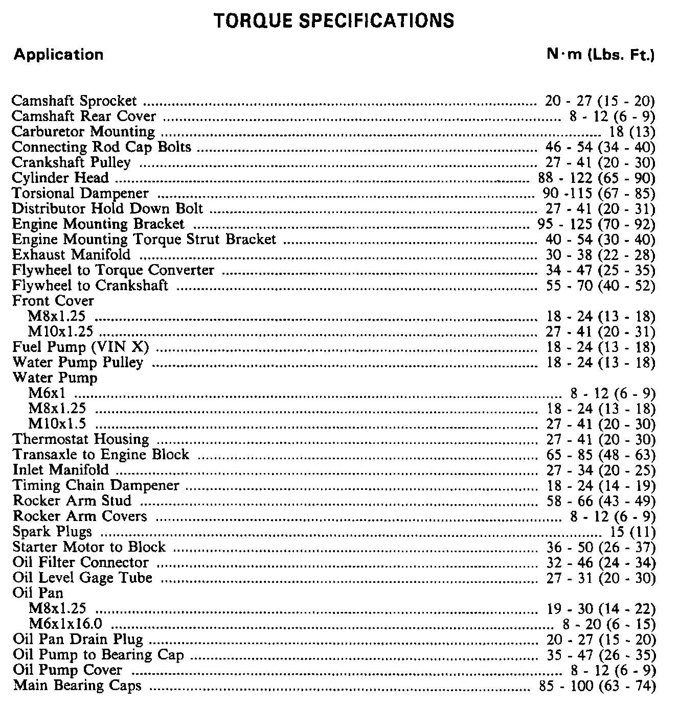 Torque Specifications: