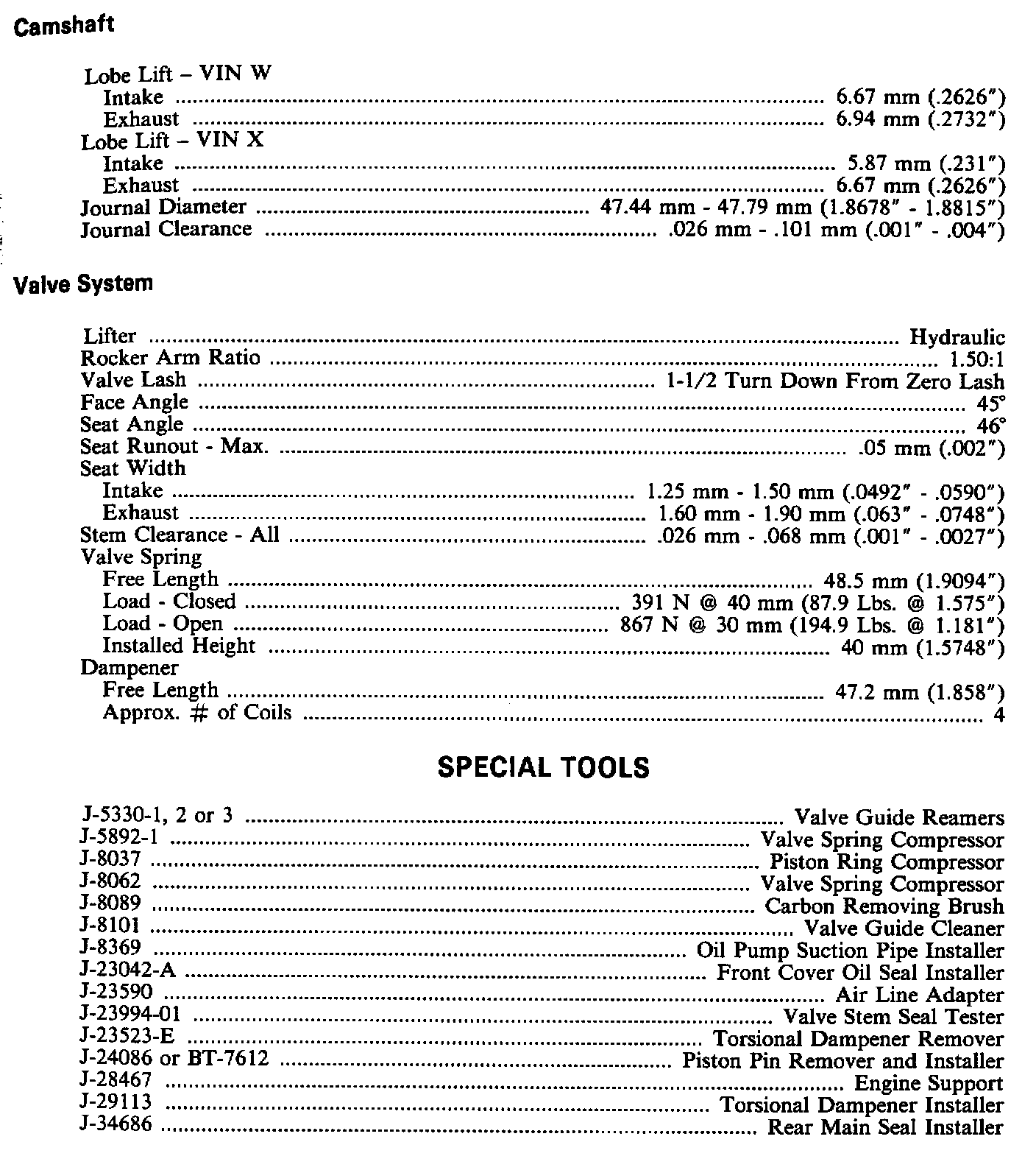 Engine Specifications: