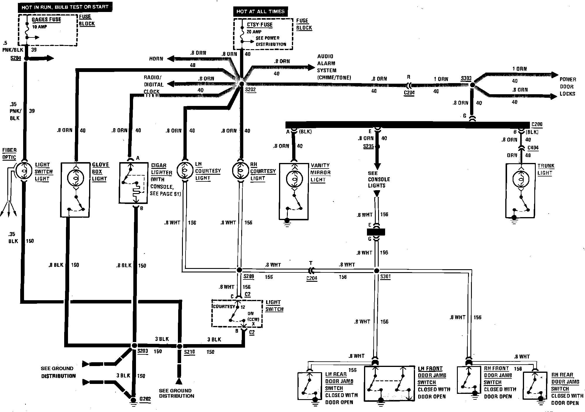 Cigar Lighter, Interior Lamps & Light Switch Illumination Wiring Circuit. Less Console: