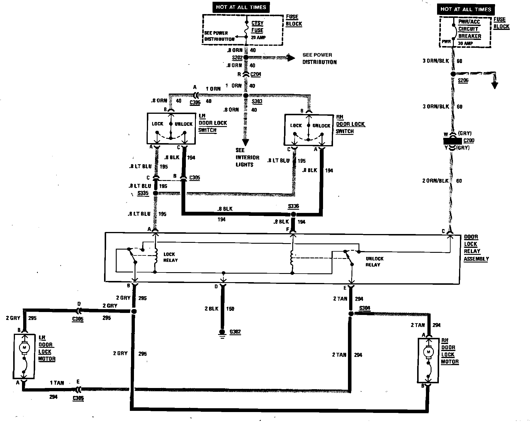 Power Door Lock Wiring Circuit (2 Door):