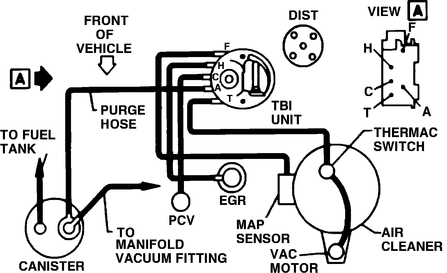 Fig. 3 Vacuum Hose Routing. 1986 Celebrity, Century, Cutlass Ciera & 6000 W/4-151 (2.5L) TBI. (VIN R):