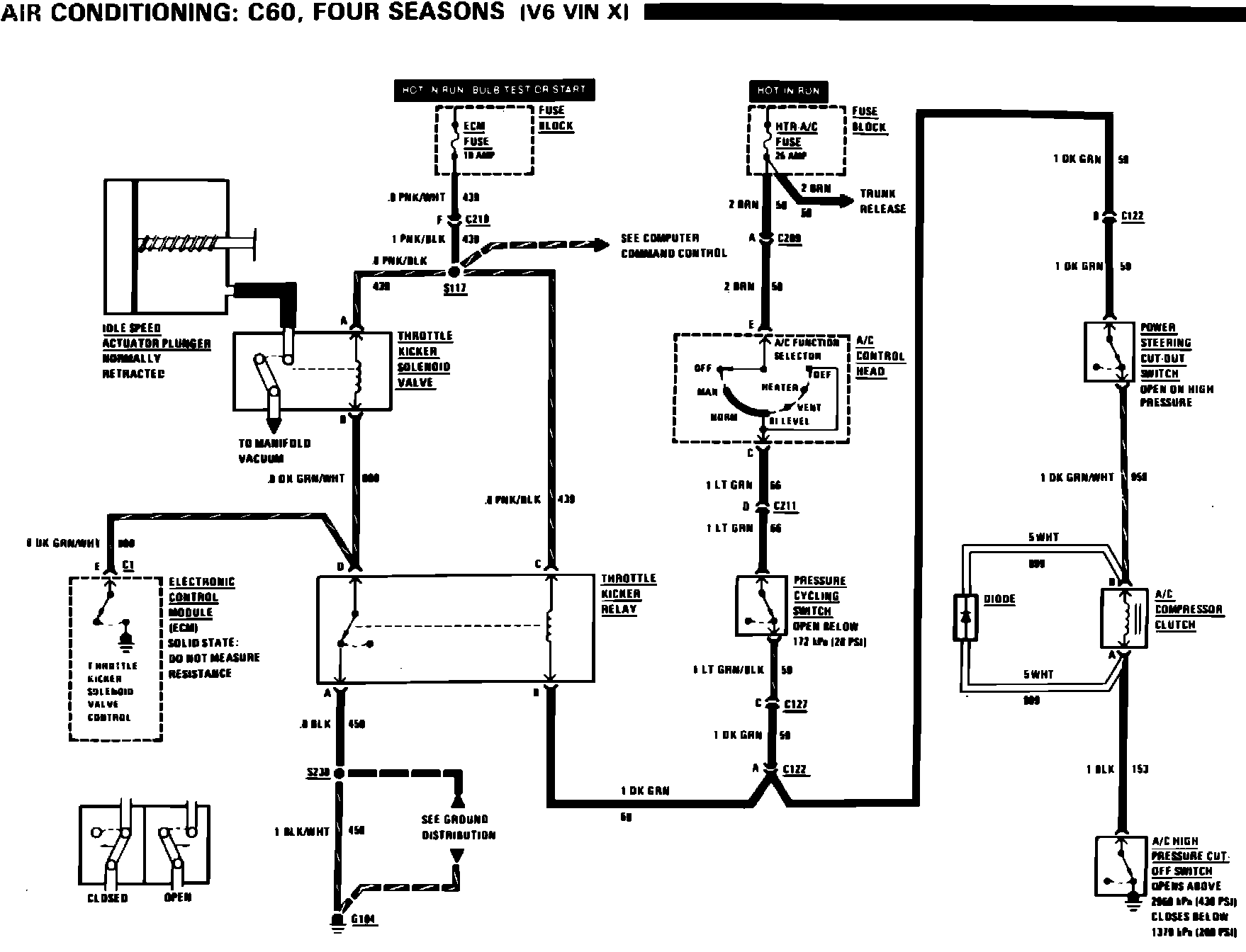 Inputs to the ECM are distributor reference, TPS, RPM, and coolant temperature. Inputs to the vacuum solenoid relay are A/C on signal and the power steering cut out switch status.