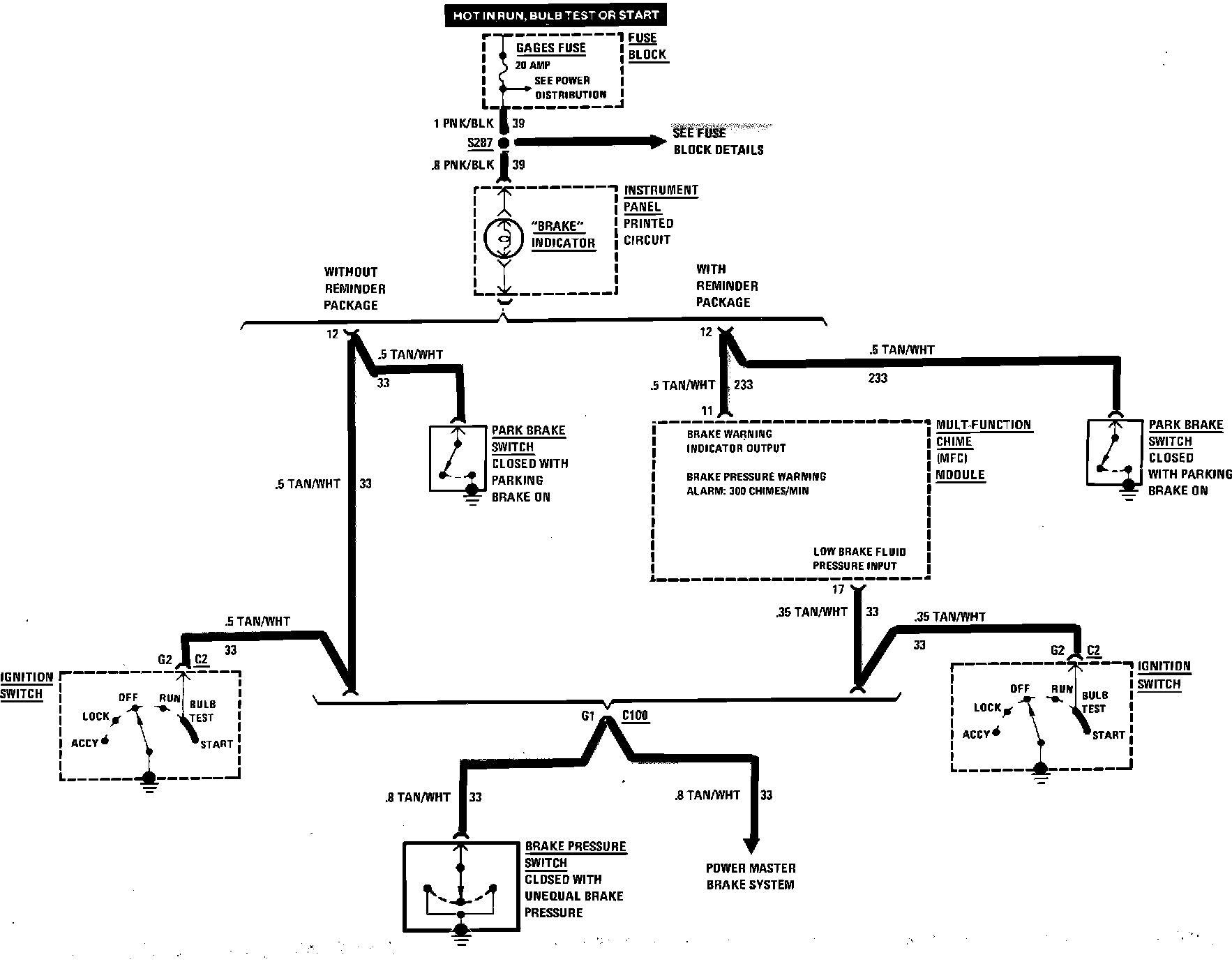 Brake Warning System Wiring Circuit (Less Power Master Brake System):