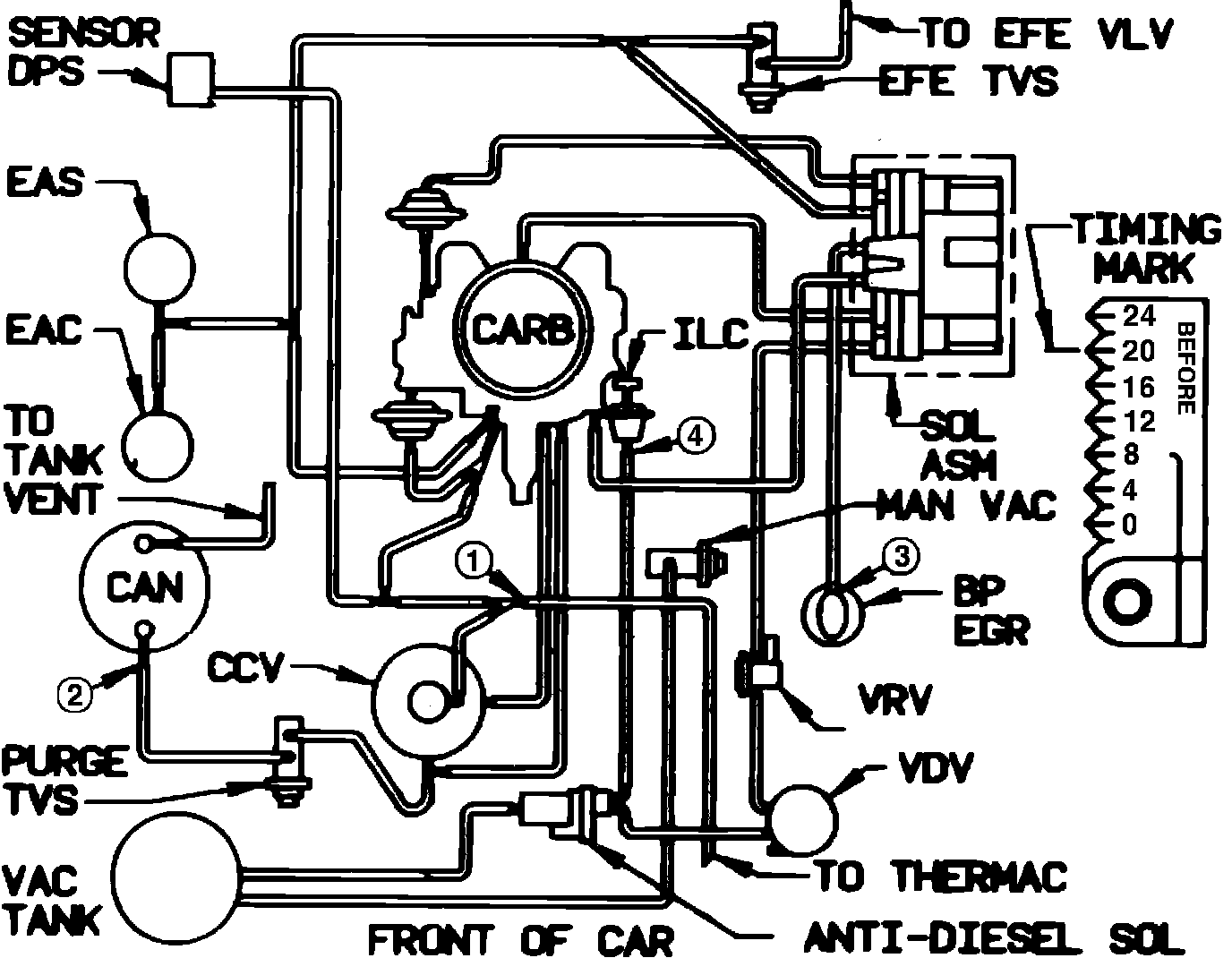 Fig. 13 Vacuum Hose Routing. 1986 V8-307 (5.0L) 4 Bbl. (VIN Y):