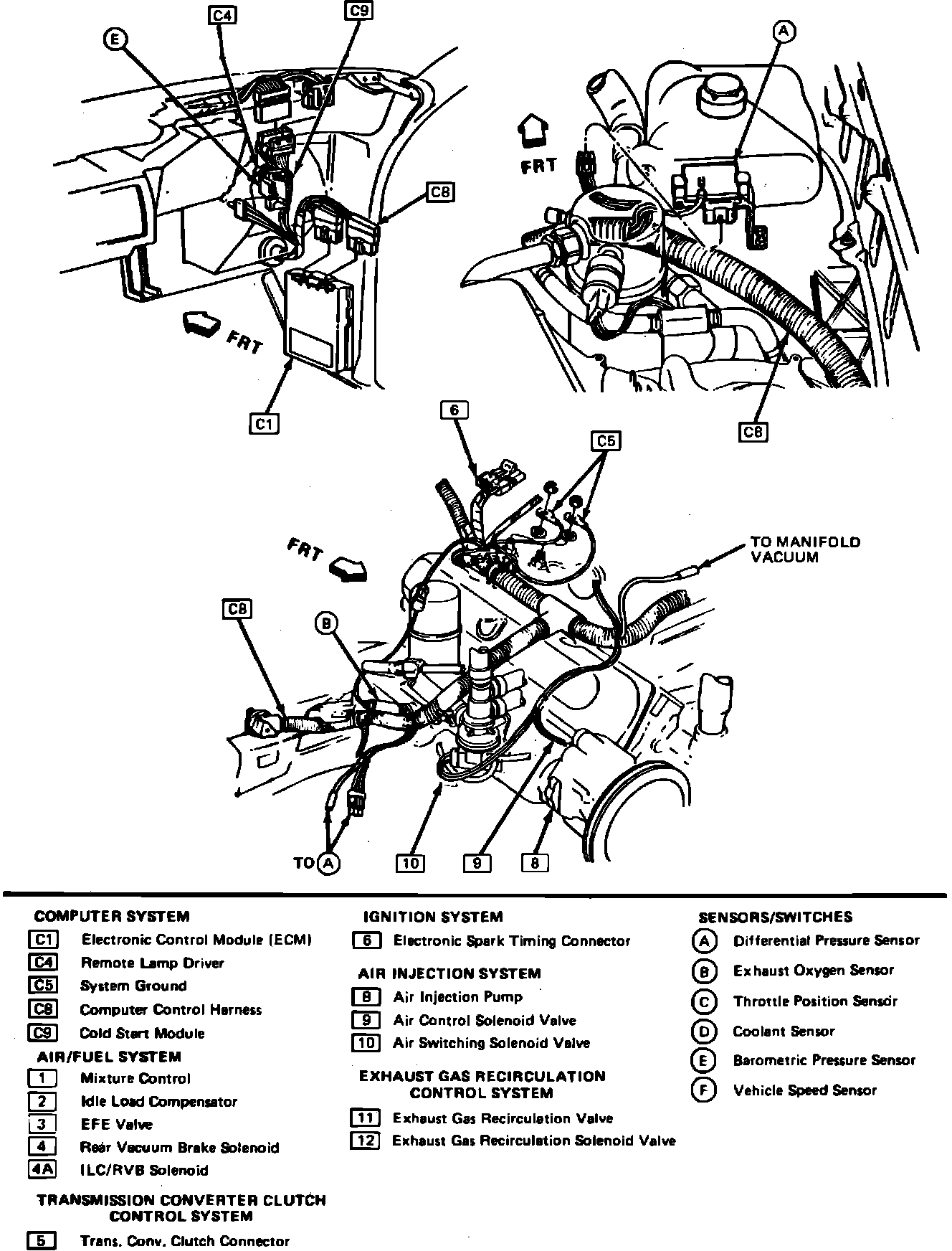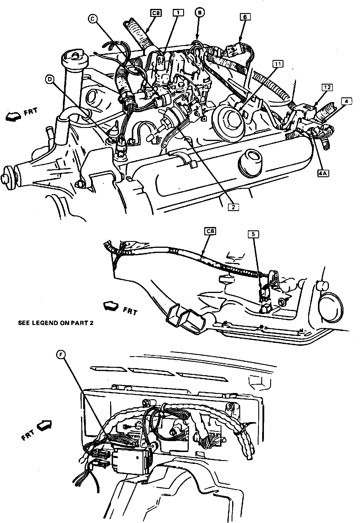 Fig. 52b Emission Component Location. 1986 Cutlass & Custom Cruiser W/V8-307/5.0L, 4 Bbl. (Part 2 of 2):