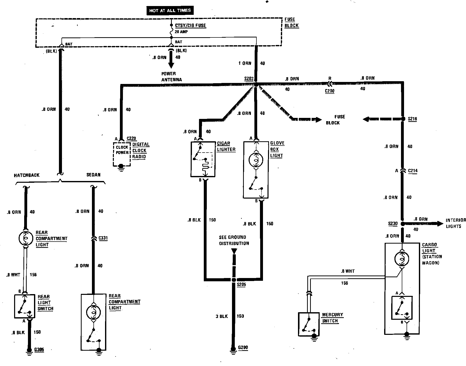 Cigar Lighter & Interior Lights Wiring Circuit: