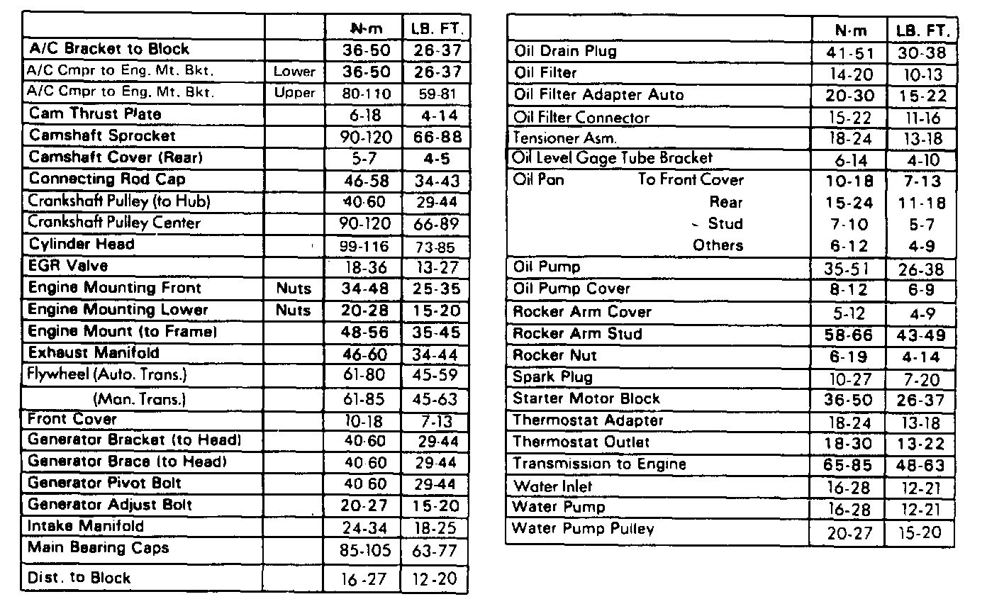 Torque Specifications: