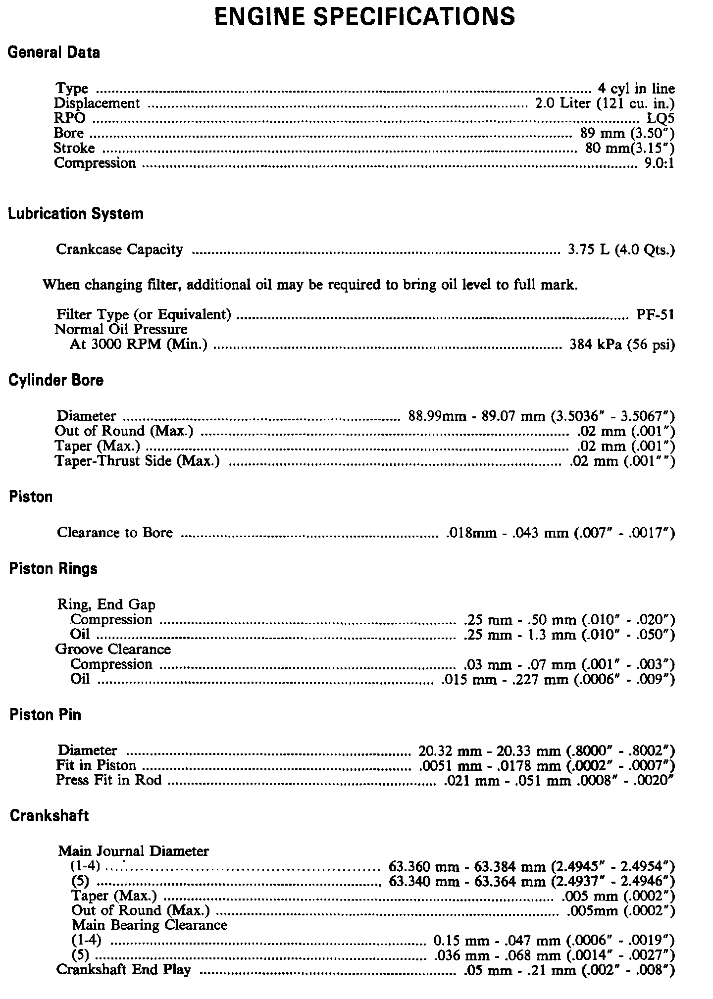 Engine Specifications: