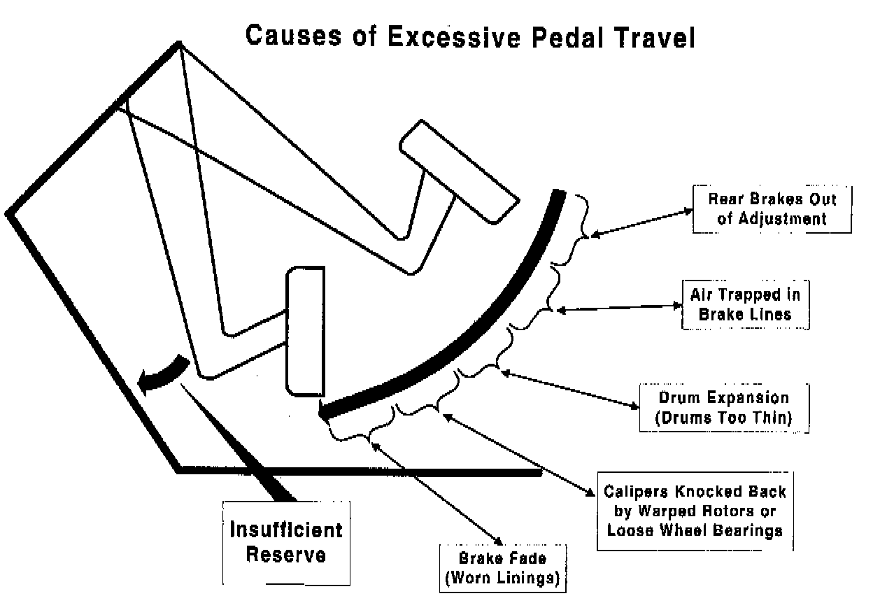 - Shoes/Linings which are badly out of adjustment can by themselves result in a brake pedal sinking all the way to the floor