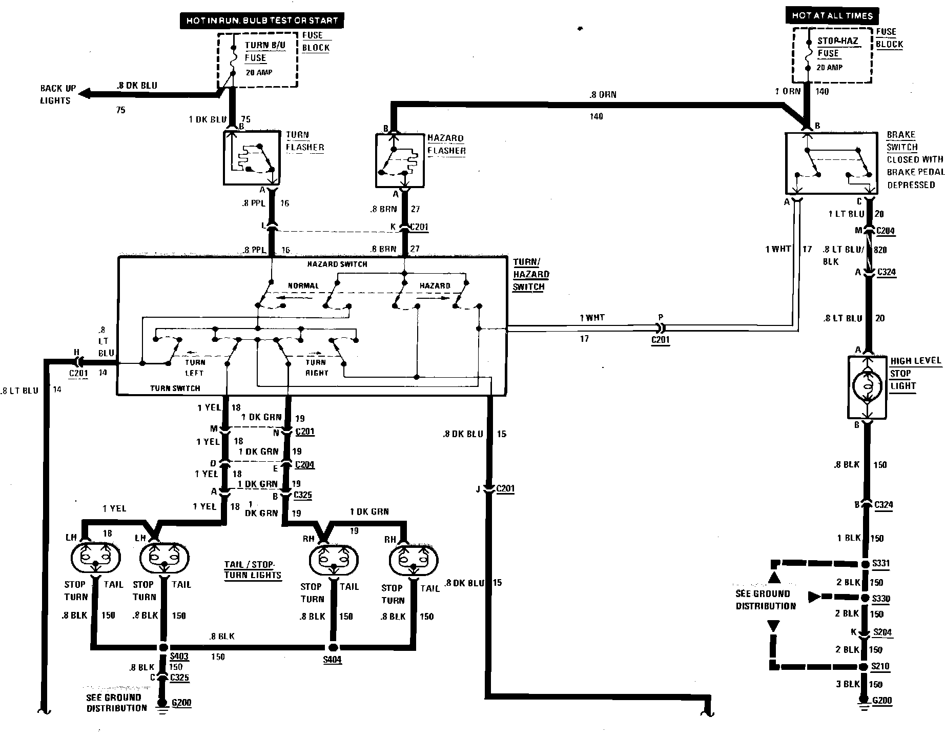 Front Marker, Hazard, Park, Stop & Turn Lamps Wiring Circuit:
