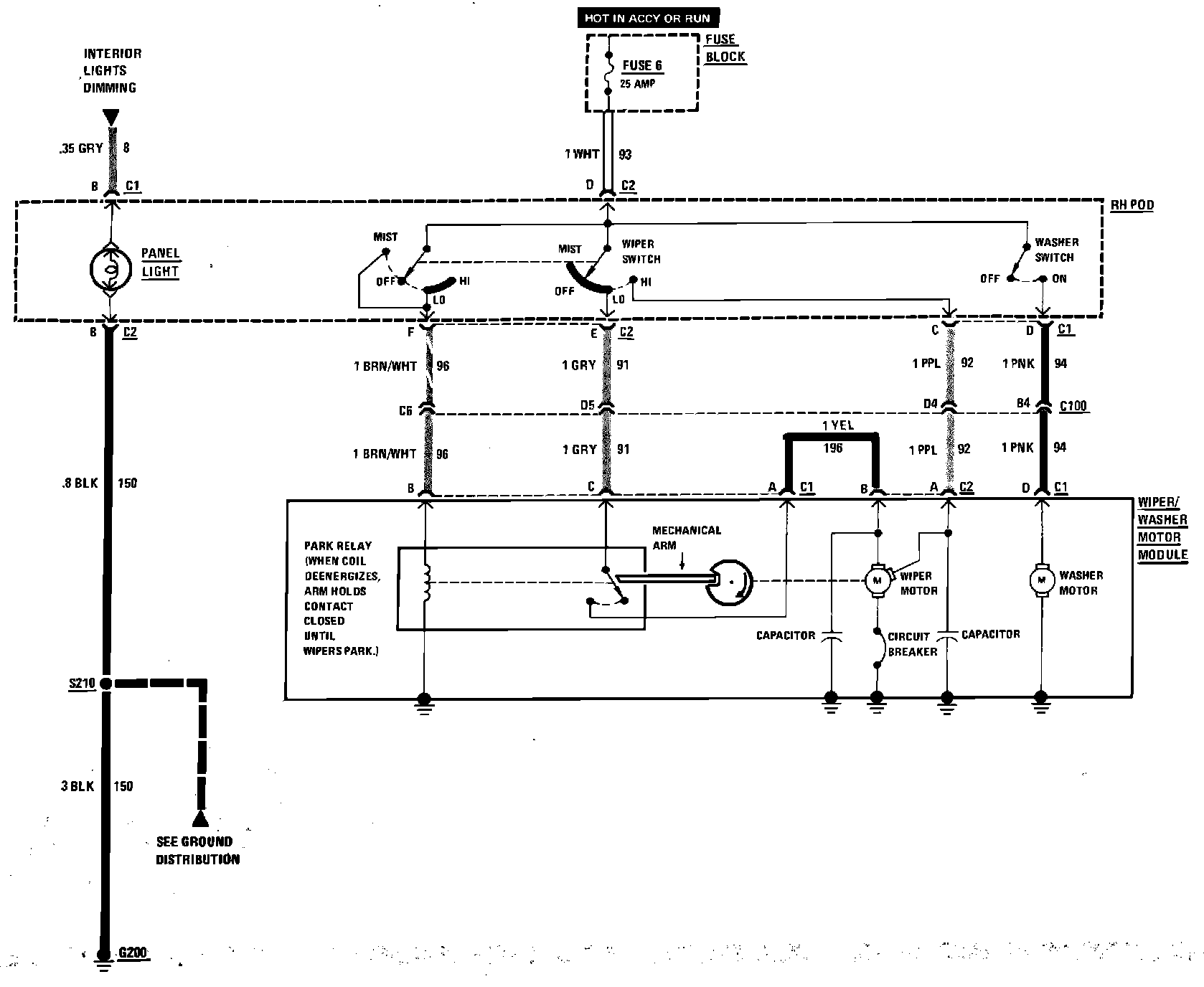 Windshield Wiper/Washer Wiring Circuit Less Pulse Wiper: