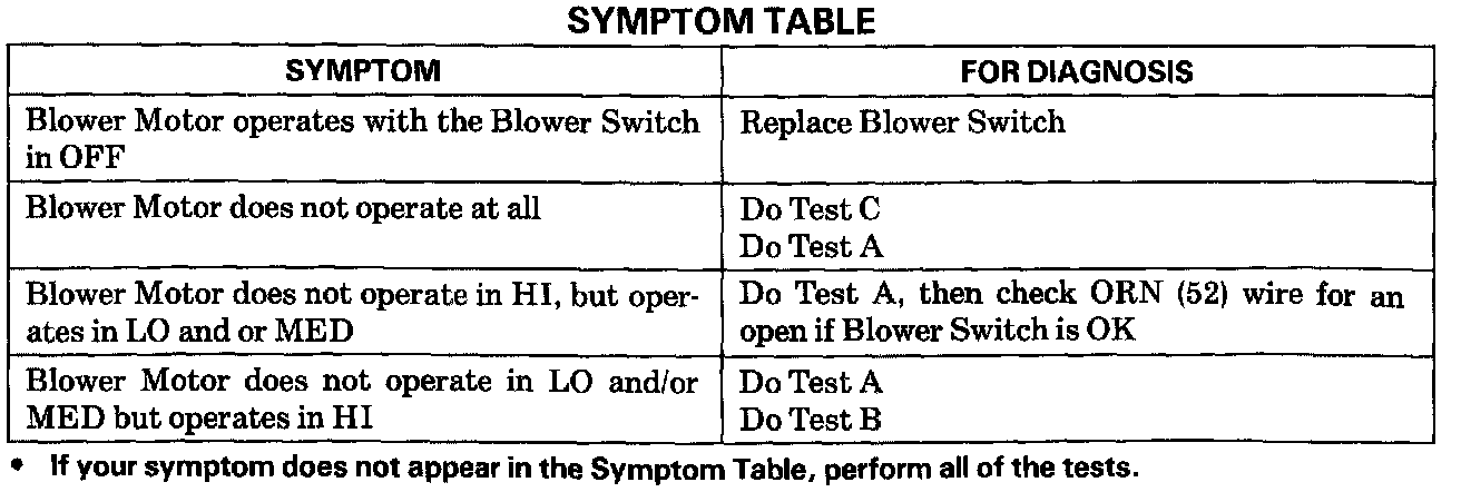 If you symptom does not appear in the Symptom Table, perform Diagnostic Test.