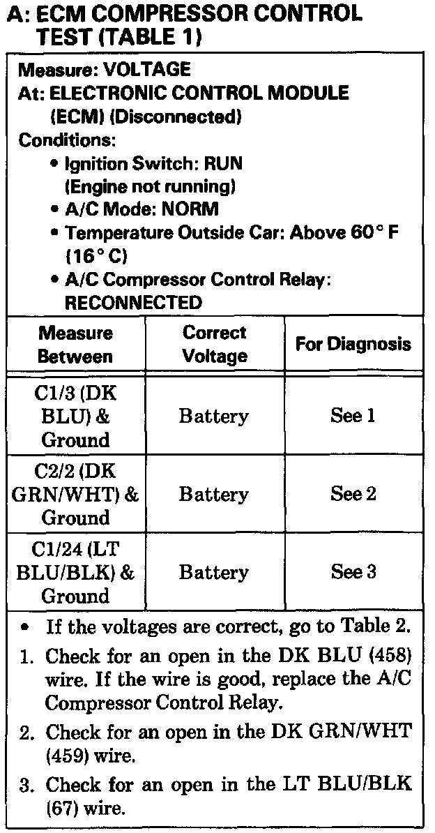 Test A ECM Compressor Control Test Table 1: