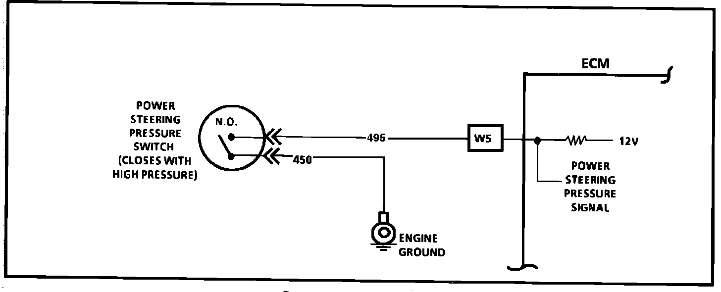 Circuit Description: The power steering pressure switch is normally open to ground, and CKT 495 will be near the battery voltage.