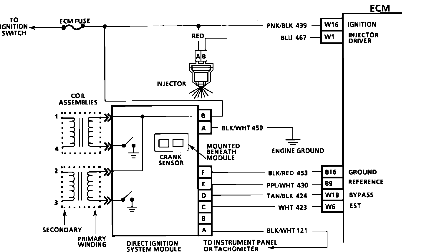 2. This test will determine if the 12 volt supply and a good ground is available at the DIS ignition module, 3. This test will determine if the ignition module is not generating the reference pulse, or if the wiring or ECM are at fault. By touching and removing a test light to 12 volts on CKT 430, a reference pulse should be generated. If rpm is indicated, the ECM and wiring are OK.