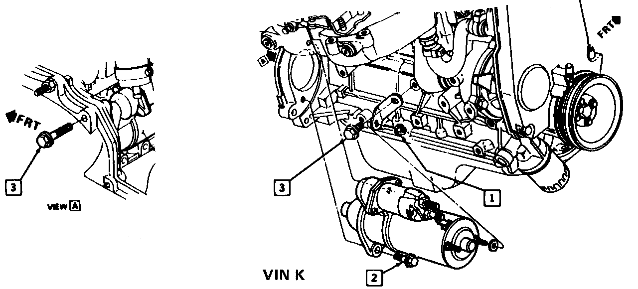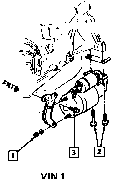 ON VIN R, U & 1 install nuts/bolts that hold the starter bracket to the starter and engine.