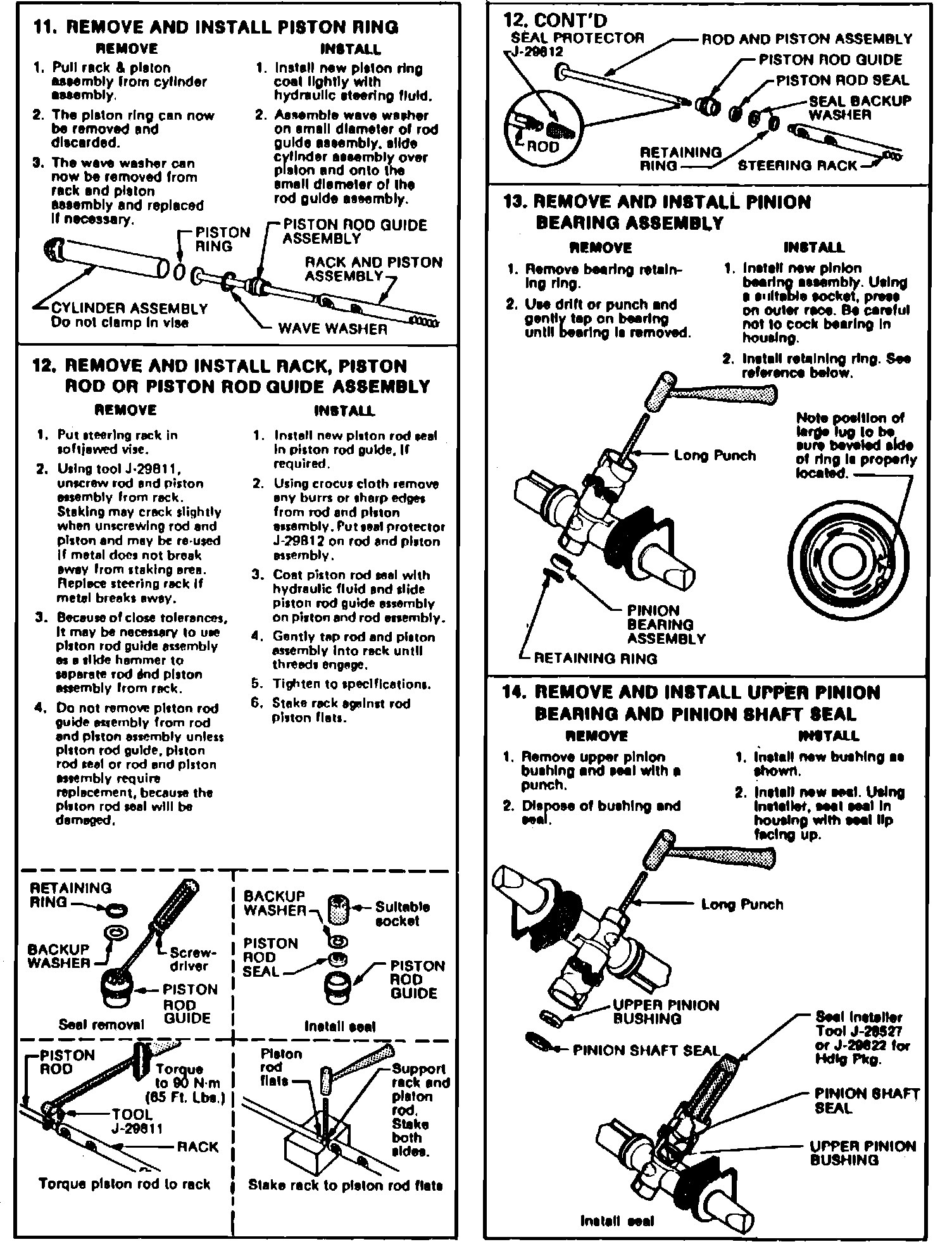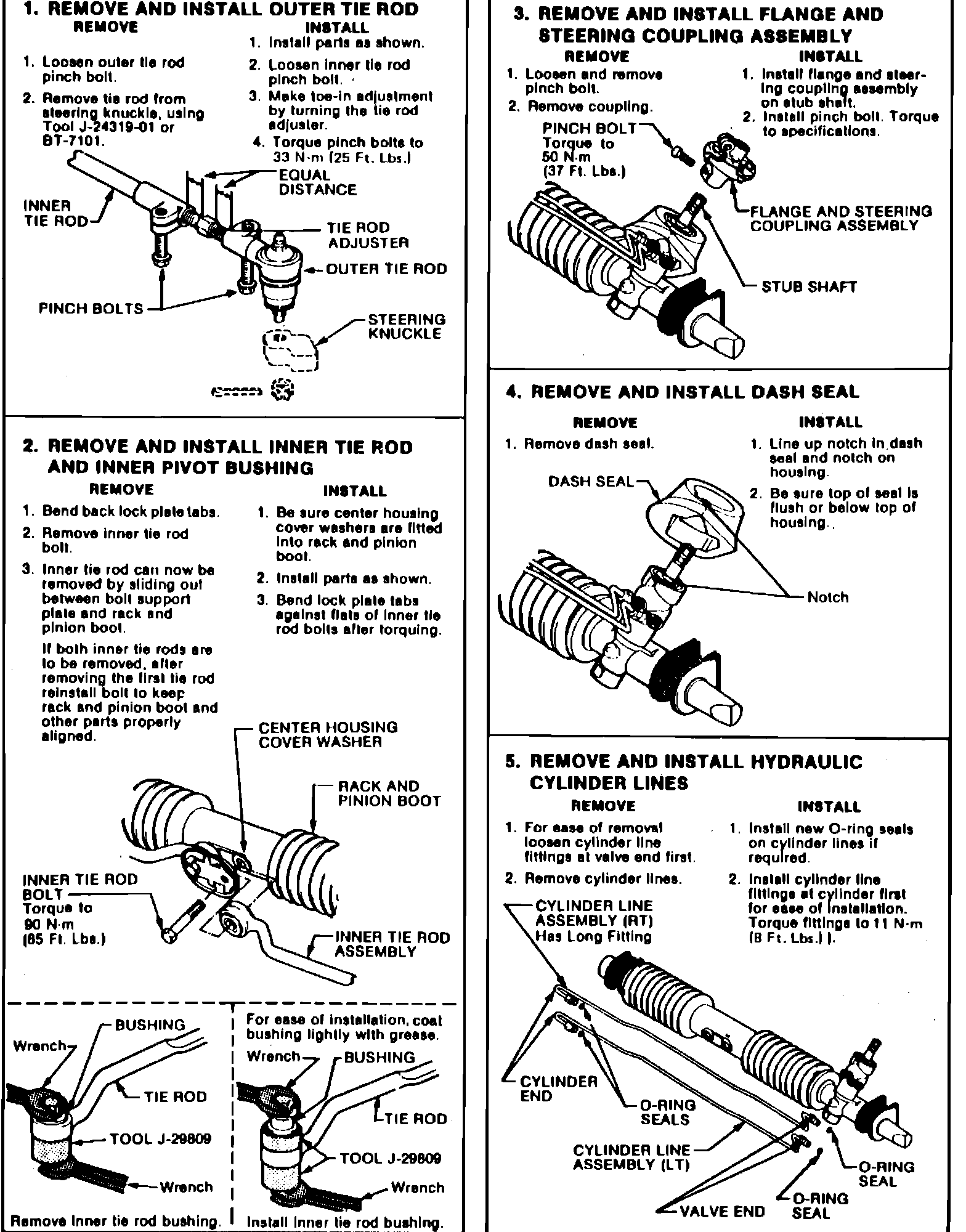 Fig. 5 Service procedures, power rack & pinion assembly. (Part 4 of 4) Cavalier, Cimarron, Firenza, 2000 & Skyhawk; 1985-87 Calais, Grand Am & Somerset Regal; 1986-87 Skylark; 1987 Beretta & Corsica: