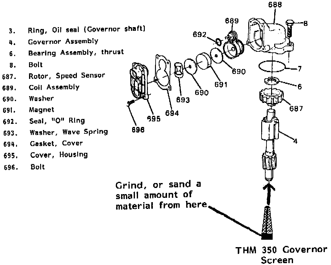 Clean governor and install a THM 350 governor screen as shown in illustration.
