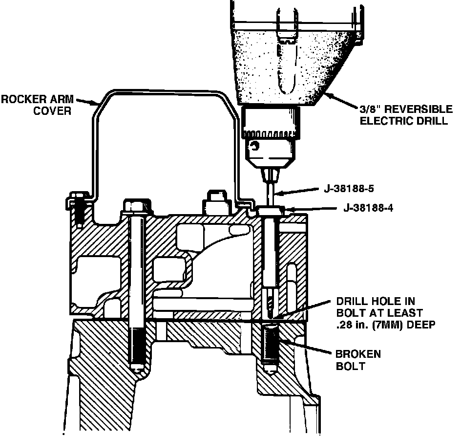 The portion of the unbroken bolt remaining in the cylinder block may be extracted without removing the cylinder head. The procedure for extracting any broken head bolt is as follows:
