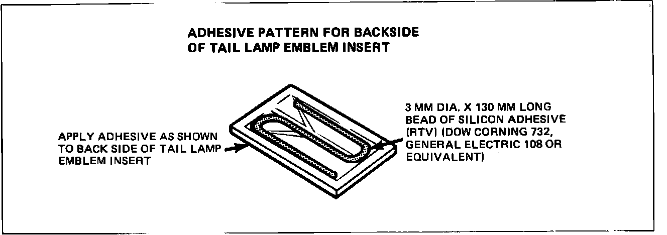 2. Refer to Figure 1 and apply RTV adhesive as shown to the back of the emblem and install into bezel. Follow the adhesive manufacturers instructions for retention and cure times.