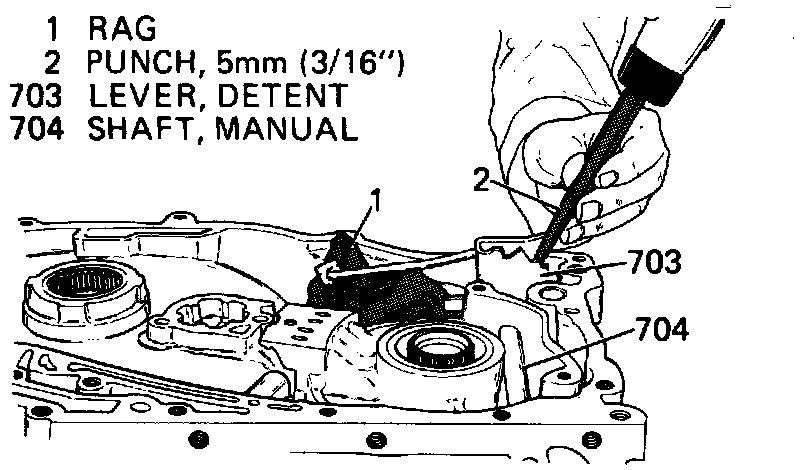1. Using suitable punch, remove detent lever to manual shaft pin, see image.
