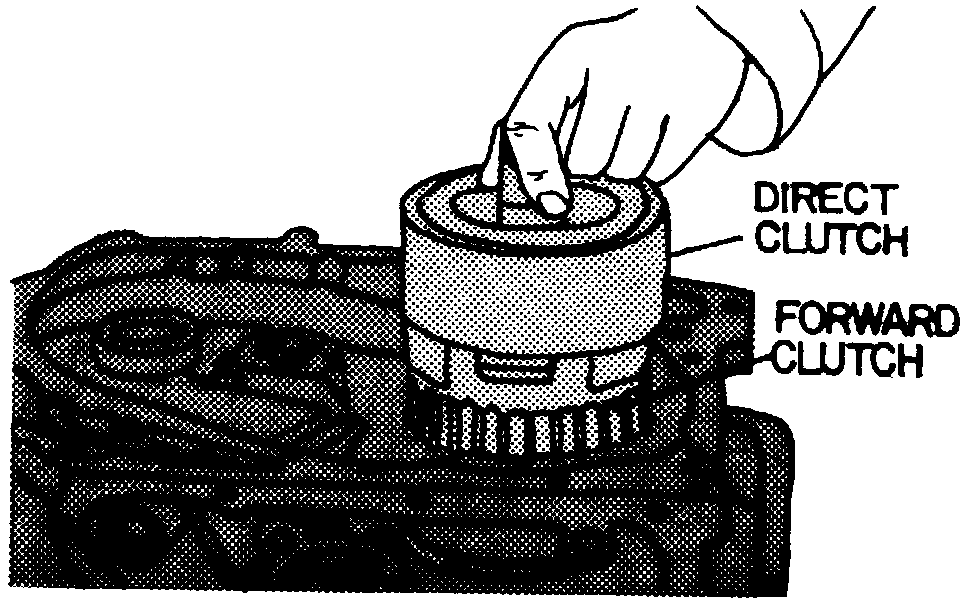 5. Remove input shaft, direct and forward clutches as an assembly , see image. Separate direct and forward clutch assemblies.