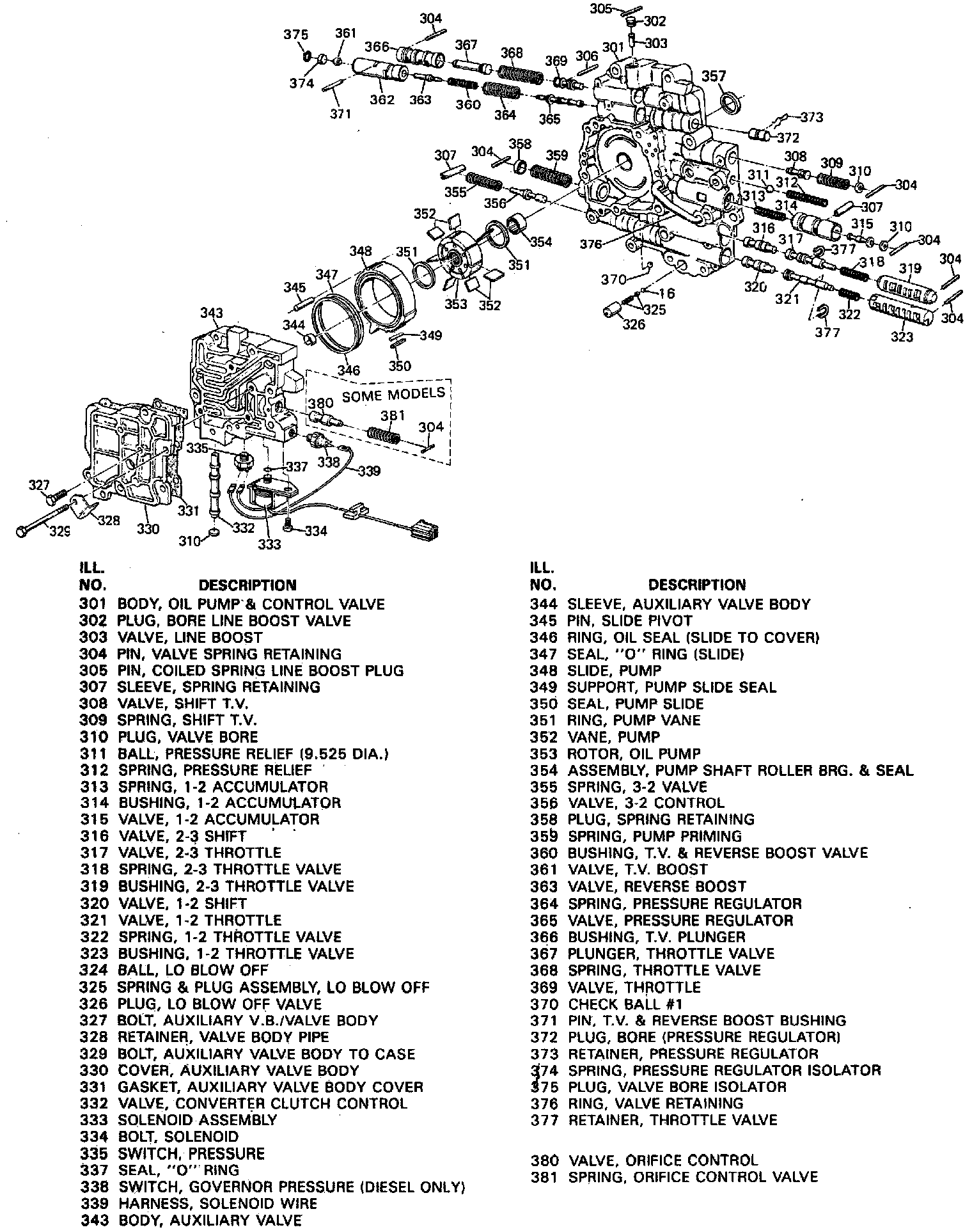 1. Disassemble valve body, noting the following:a. Valves and springs are not interchangeable, keep them in the order shown, see image.