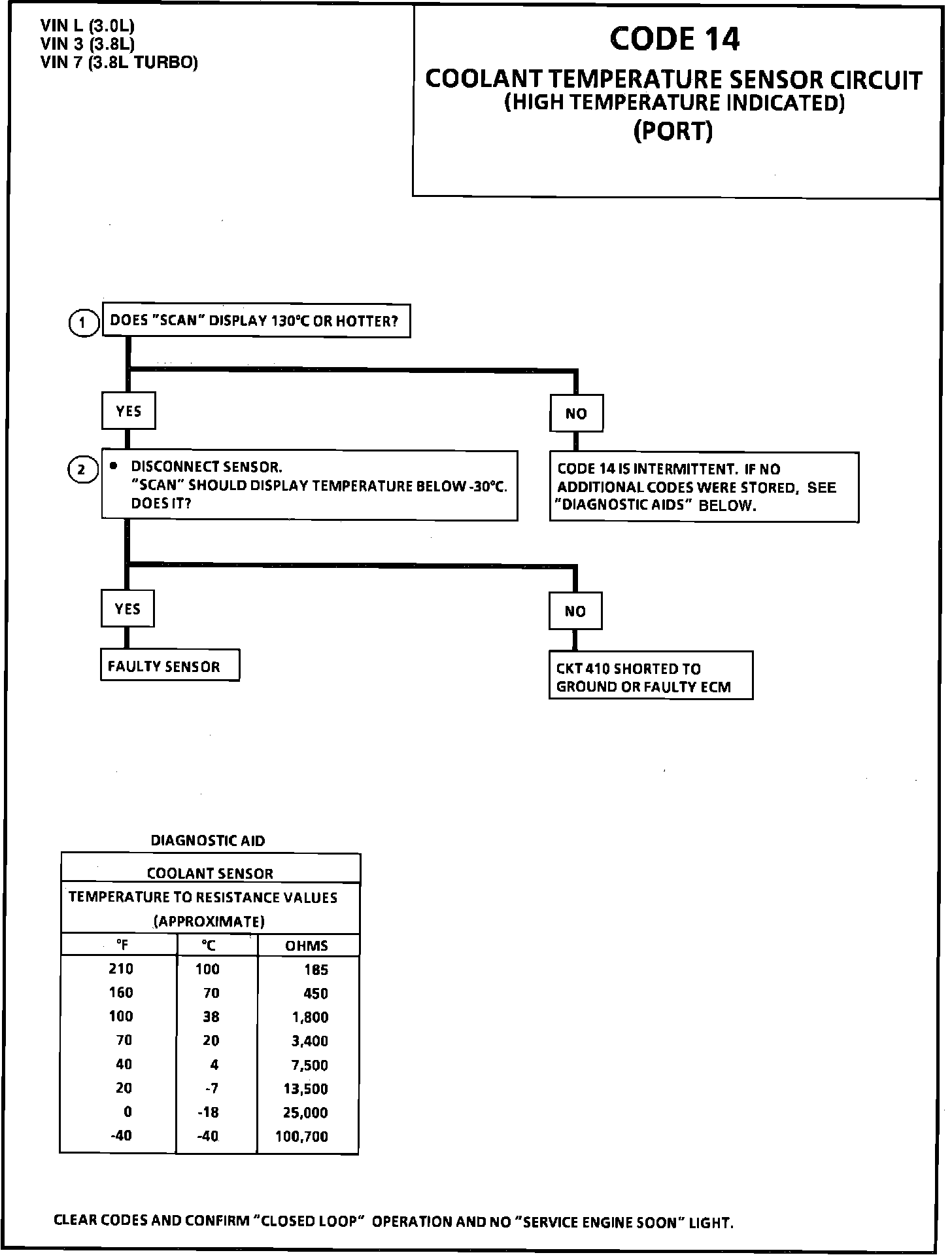 CODE 14 - COOLANT TEMPERATURE SENSOR CIRCUIT (HIGH TEMPERATURE INDICATED)