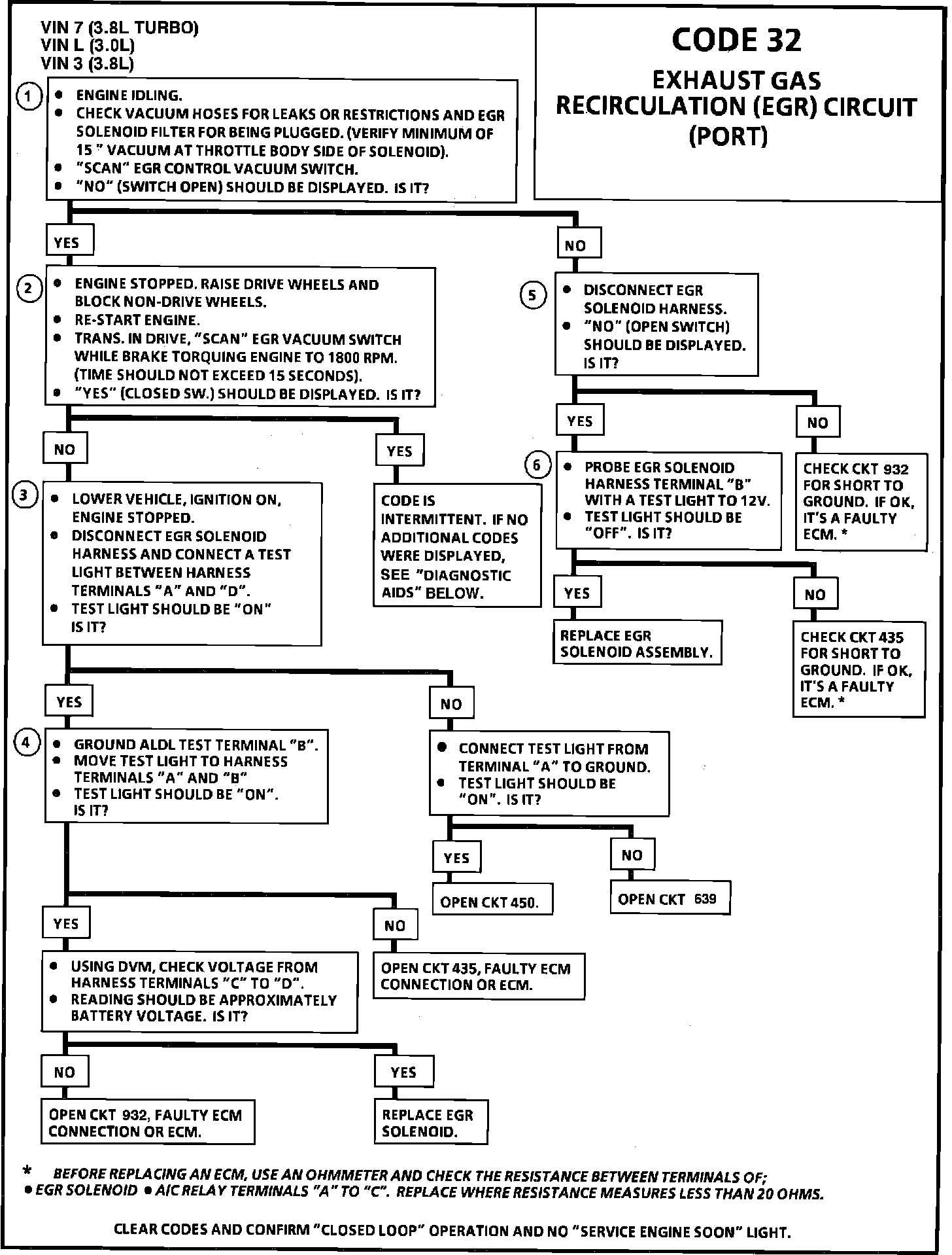 6. If the EGR display switches from "YES" to "NO" when the EVRV is disconnected, the fault is either in the EVRV/EGR Solenoid, CKT 435 or the ECM.