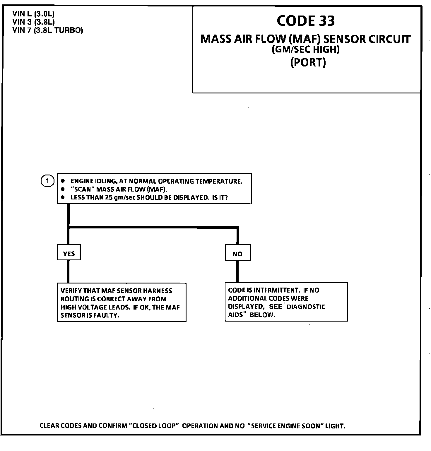 CODE 33 - MASS AIR FLOW (MAF) SENSOR CIRCUIT (GM/SEC HIGH)