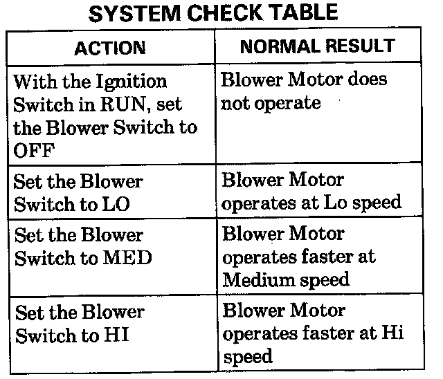 Use the System Check Table as a guide to normal operation.