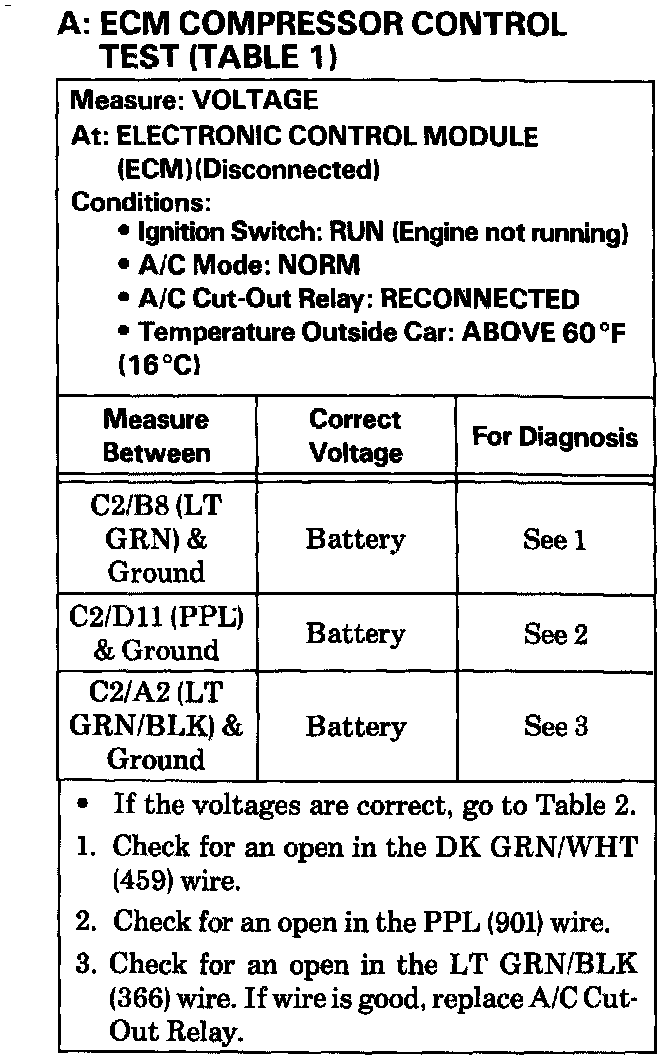 Test A ECM Compressor Control Test Table 1: