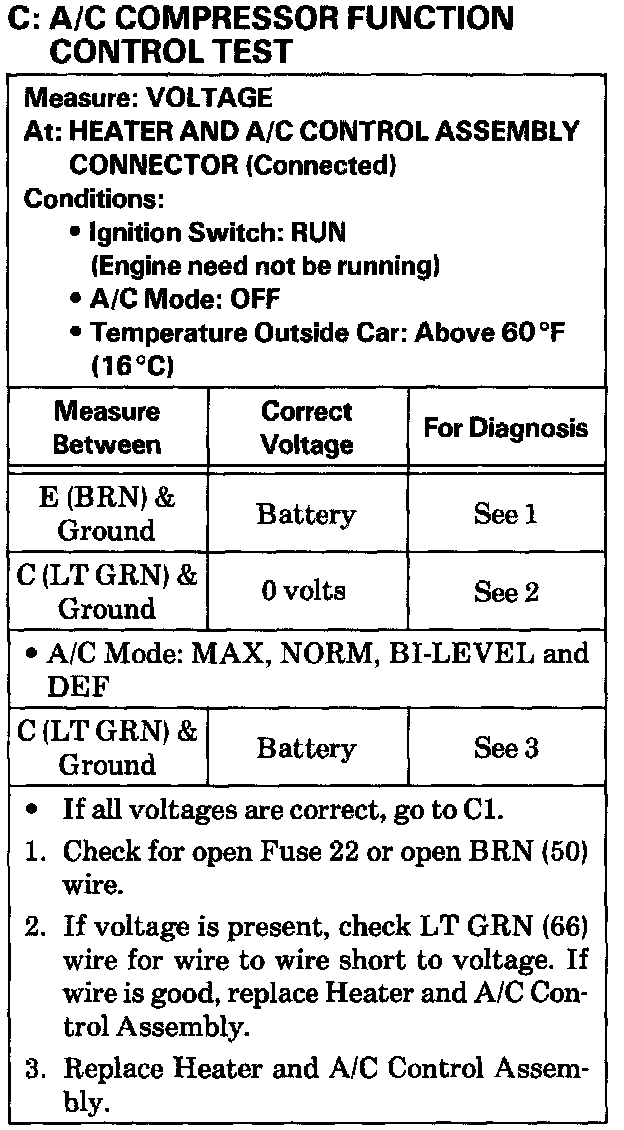 Test C A/C Compressor Function Control Test: