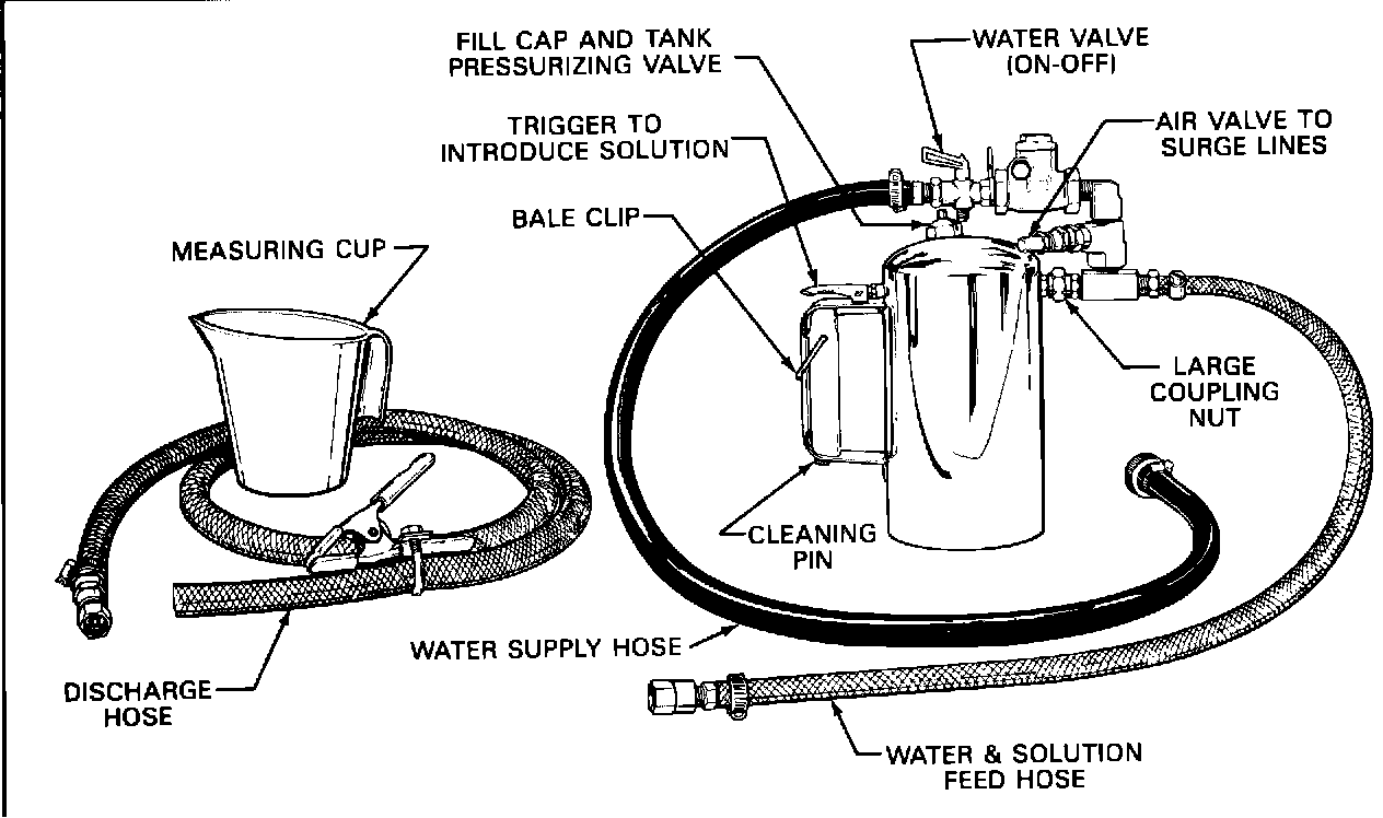 25. Bleed air pressure from the can, remove fill cap, return any unused solution to container, and rinse the can out with water. Do not store tool with solution in tank.