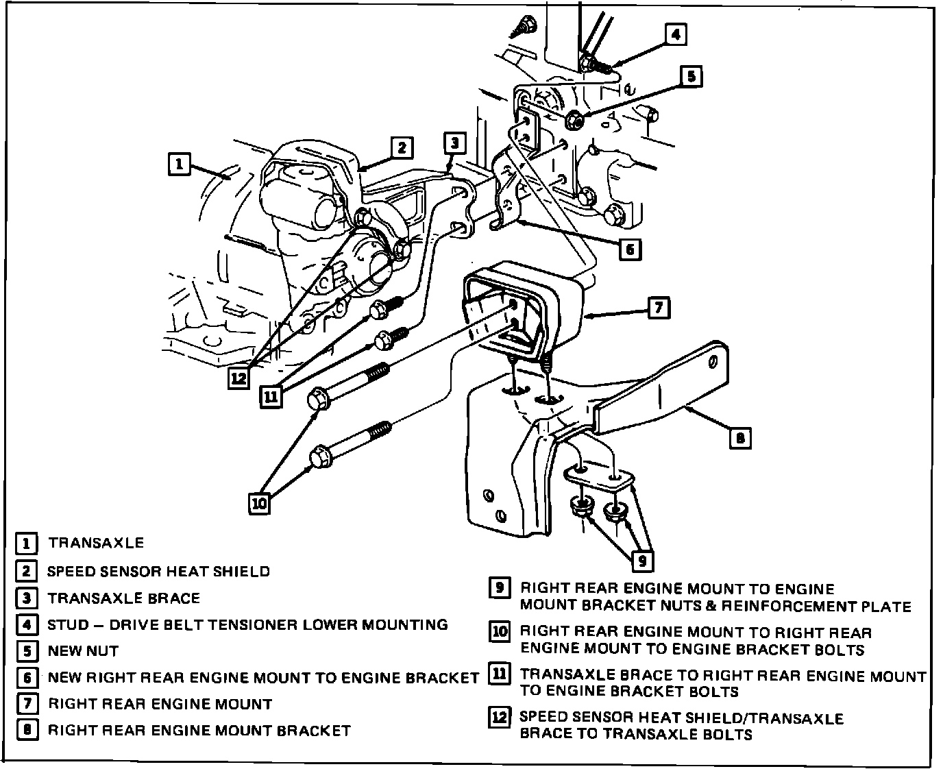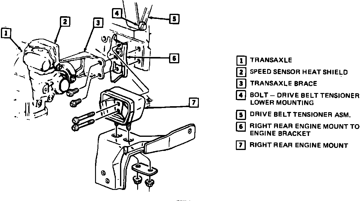- Right rear engine mount to engine bracket
