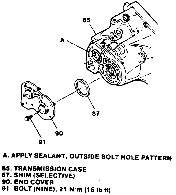 1. Apply sealant No. 1052943 or equivalent to outside end plate (90) bolt hole pattern of case.